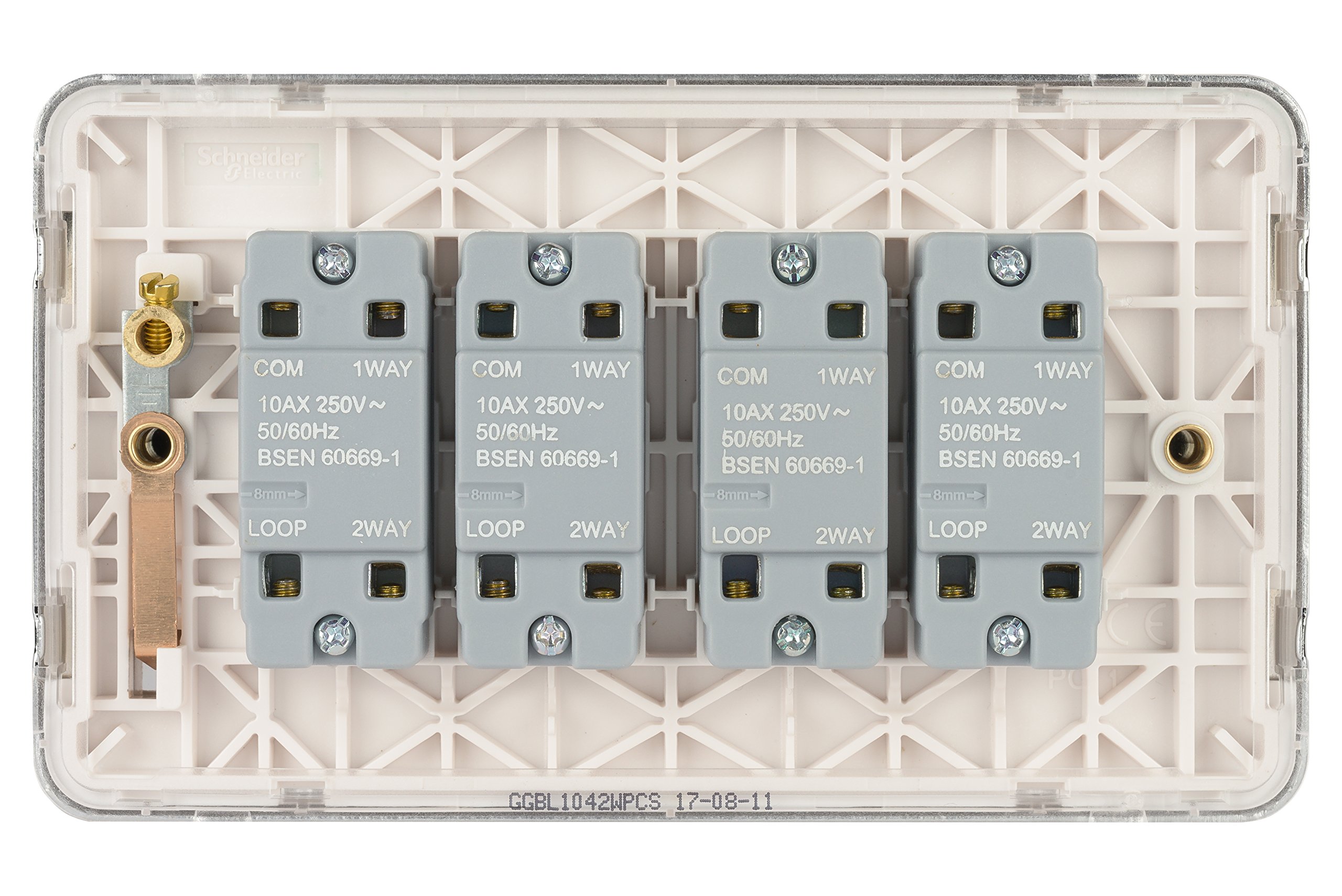 Type de technologie : électromécanique Longueur de dénudage des fils : 12 mm Profondeur d'encastrement : 18,75 mm Rockers métalliques gercés doucement pour compléter le profil incurvé Les lignes modernes lisses de Lisse Deco sans vis offrent une élégance discrète pour compléter les intérieurs d'aujourd'hui. Température ambiante de stockage : - 5 à 50 °C Durée de vie en cycles et électrique : 20000 cycles à ON / OFF (cos φ = 0.6 et Ue nominal) Interrupteur va-et-vient avec voyant LED permettant de faire fonctionner deux prises de courant partir d'un point de commutation central, avec surface blanc brillant, installation via bornes enfichables, livraison sans cadre d'encastrement, puissance maximale 250V 10A, avec double bascule, conception robuste avec une capacit de charge lev e... Poids du produit : 40 g marquages de câble sur les produits avec un modèle moulé pour vérifier la longueur du fil peinture et décoration faciles par le couvercle distinct à vis sans vis et clip fiable dans le système Forme de la tête de vis : pozidriv n°1 plaque de bord surélevée de 7 mm avec profil arrondi , Facile à installer Lot de 10 interrupteurs va-et-vient ODACE 10 A à vis SCHNEIDER couleur de moulage au dos gris clair pour faciliter l'identification du terminal Interrupteur Va Et Vient 2 Gang 2 Voie,Blanc Interrupteur Encastrable Sans Vis À Bascule,10A Lisse GGBL1022WSS Interrupteur double 2 voies 10AX en acier inoxydable avec insert blanc.[Z2512...