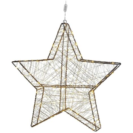 Fonctionne avec 3 piles AA 1,5 V (non incluses) Nous avons toujours de nouveaux produits dans la gamme, notamment dans le domaine des décorations de Noël et de l'Avent Nos avantages : Marque allemande depuis plus de 20 ans sur le marché européen - Conforme à toutes les normes européennes Cela vaut toujours la peine de regarder Enroulée autour d'un fil argenté robuste et d'une guirlande lumineuse, cette étoile en métal est un accroche-regard moderne et chaleureux pour les fêtes de fin d'année. Voici une petite sélection de produits populaires : Éclairage extérieur Éclairage extérieur dans de nombreux types et formes : Avec prise ou batterie blanc chaud, blanc froid ou multicolore avec minuteur / avec fonctions pour les petits espaces extérieurs et pour les très grands espaces extérieurs Le diamètre est d'environ 60 cm Étoile en métal LED décorative pour le mur et la fenêtre L’étoile en métal LED est entourée de fil et équipée de LED, qui illumine joliment l’étoile et son environnement d’une douce lumière ambrée. Un article décoratif pour la période de Noël, à utiliser pour orner une fenêtre ou un mur. Équipé d'un minuteur (6 heures). Trois piles AA sont nécessaires au... Éclairage intérieur Éclairage intérieur pour une belle fête : Avec prise ou batterie avec minuteur ou sans différentes couleurs et types Créez de ravissantes décorations de l'Avent pour votre maison avec cette étoile LED argentée à suspendre ! Sapin de Noël mural Fairybell - 2 m de haut€75,90Le prix initial était : €75,90.€22,77Le prix actuel est : €22,77. Arbre lumineux LED, noir, 150 cm€12,00Le prix initial était : €12,00.€3,60Le prix actuel est : €3,60. Promo Etoile Noel Étoile 3D En Métal à Suspendre « Lizzy », 60 LED Blanc Chaud Multipointes Noire 47 Cm 88011078 Sapin Papier Avec effet 3D – étoiles intérieures pivotantes verticalement En l'attachant à un fil de nylon dans la fenêtre, on a l'impression qu'elle flotte. Vous pouvez également utiliser l'anneau décoratif décoré et lumineux comme magnifique couronne de porte ou décoration murale pendant l'Avent. Étoile LED à suspendre en métal argenté 70 LED blanc chaud 25cm Matériau : métal - Couleur : argent - Couleur de la lumière : blanc chaud