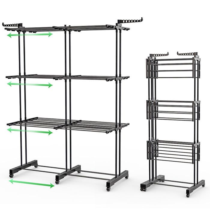 Fivtenrich Séchoir à linge pliable pour porte, économiseur d'espace, crochet de suspension pour serviettes, manteaux, sacs et peignoirs Description du produit Matériau : aluminium spatial Taille : 40 * 32,5 * 32 cm Couleur : noir, argent Méthode d'installation : pas de per?age Contenu de l... Taille : ces crochets de suspension de porte s'adaptent à la plupart des portes dont la largeur est de 1,8 à 3,8 cm. Séchoir A Linge Pliable Séchoir à Linge Mural Pliable Et Extensible, économiseur D Etendoir Pour Porte De Linge Parfait pour accrocher des vêtements, manteaux, serviettes, etc. Séchoir À Linge Pliant Crochet De Suspension Murale Pliante For Chambre... Tancarville pour le linge : tout savoir sur cette marque de séchoirs Application : les crochets de porte ont 5 espaces de suspension, peuvent être appliqués à la plupart des portes de votre maison, s'adaptent aux portes de salle de bain, de chambre ou de placards. Composants inclus : le colis comprend 2 crochets de suspension sur la porte