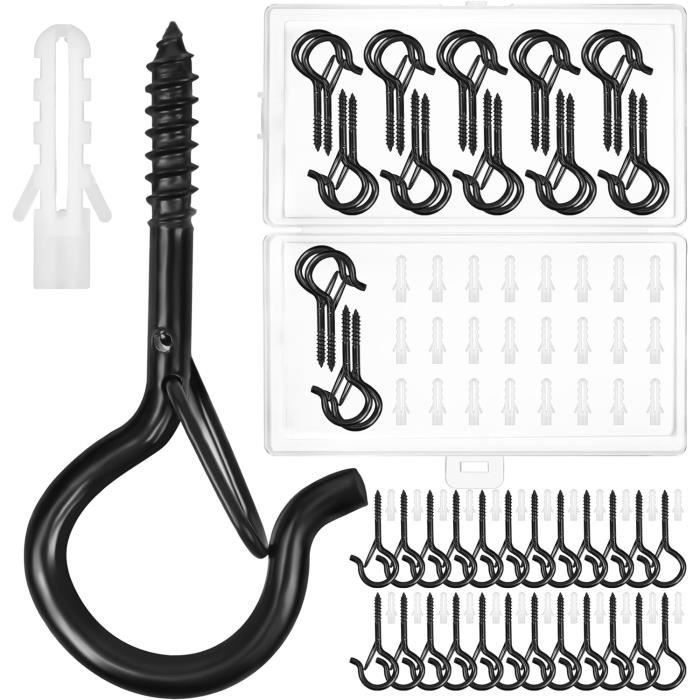 Ahlsen Piton à Visser Noir 30 Pièces Crochet à Visser Charge Lourde