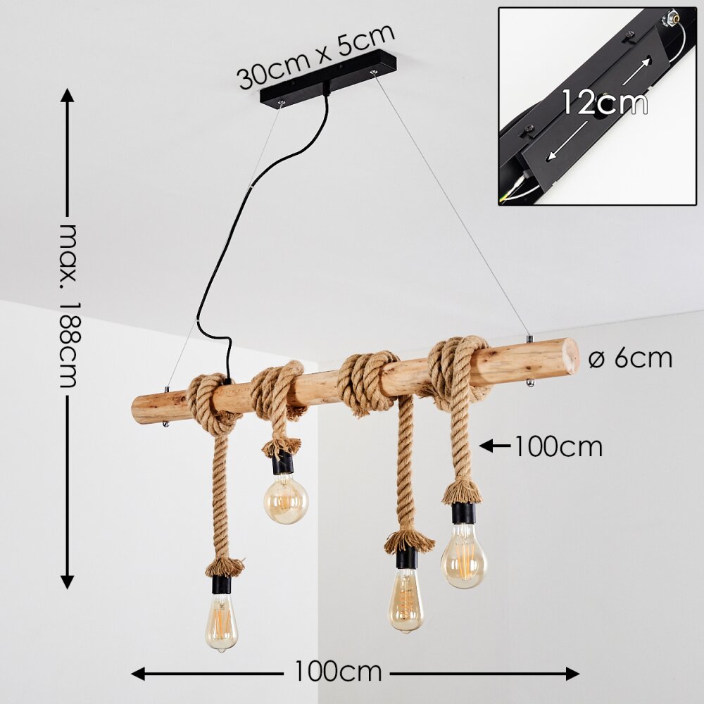 Détails techniques lampe & ampoule LED: non spécifié Nombre de lumière(s): 4 Culot: E27 Ampoule(s) fournie(s): Non Ampoule(s) remplaçable(s): Oui Alimentation électrique: 230 Volt Puissance par lumière: 60 Intensité variable: Variateur externe (non inclus) Sécurité Indice de Protection: IP20 Classe de protection: I Autres options Changement de couleur: Non Télécommande: Non Détecteur de mouvement: Non Détails techniques lampe & ampoule: LED: non spécifié | Nombre de lumière(s): 4 | Culot: E27 | Ampoule(s) fournie(s): Non | Ampoule(s) remplaçable(s): Oui | Alimentation électrique: 230 Volt | Puissance par lumière: 60 | Intensité variable: Variateur externe (non inclus) Lampe pendante - HOFSTEIN - Hautahi - Bois foncé - Métal gris - Vintage - Hauteur ajustable... Son design unique et artisanal crée une atmosphère chaleureuse et accueillante, parfaite pour un intérieur au charme authentique. Type Type de luminaire: Suspension Dimensions Hauteur: 188 Longueur: 100 Diamètre: 6 Matériaux et coloris Matériau du luminaire: Bois, Métal Matériau de l'abat-jour: Corde Couleur du luminaire: Brun, Noir Couleur de l'abat-jour: Écru Style et caractéristiques Type d'utilisation: Intérieur Pièce: Chambre à coucher, Salle à manger, Salon Style: Boho Style, Vintage Interrupteur On/Off: Non Forme: Allongé, Autre, Cylindrique Ajustable: : Les câbles peuvent être enroulés autour de la barre centrale. Lampe pendante Drops En vente sur Son design authentique et chaleureux en fait un véritable atout déco, parfait pour une maison au charme rustique ou industriel. Lampe De Chevet Suspension Lampe Suspendue Lampe En Bois Suspension Lampe De Table à Manger Brun Foncé Satiné Lampe Sur Pied Culot:E27 > Ampoule (s) fournie (s):Non Ampoule (s) remplaçable (s):Oui Puissance par lumière:60Watt Intensité variable:Variateur externe (non inclus) Alimentation électrique:230 Volt Sécurité Indice de Protection > :IP20 Classe de protection > :I Autres options Changement de couleur:Non Télécommande:Non Détecteur de mouvement > :Non Cet article est livré sans ampoule. Inspirée du style rustique et industriel, cette suspension allie la robustesse du bois naturel à l’élégance brute des cordes en chanvre. ✅ Un éclairage doux et tamisé : Idéal pour créer une ambiance relaxante et conviviale. Si vous aimez le charme des matériaux naturels, découvrez notre collection de suspensions en bois pour encore plus d’inspiration. Sécurité: Indice de Protection: IP20 | Classe de protection: I