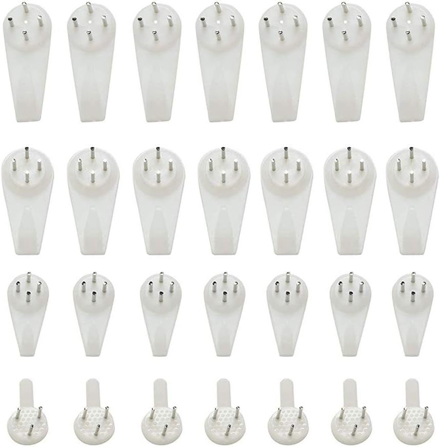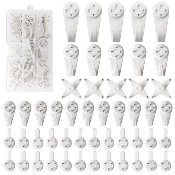 Le retrait des crochets ne laisse aucune trace des grands trous et il est facile de les démonter et de les installer. Crochets invisibles : Les crochets sont dissimulés pour préserver l'esthétique de vos murs ; crochets pour cadres photo, accessoires de fixation pour cadres photo.Installation sans perçage : Se fixe facilement au dos du cadre photo sans vis, évitant ainsi d'abîmer vos murs. Crochets décoratifs et pinces pour cadres photo.Métal durable : Fabriqué en métal robuste, garantissant... Convient aux portes en bois, aux murs en béton, aux murs en pierre calcaire, aux armoires et au papier peint. Matériau : Les crochets à clous sont fabriqués en plastique ABS de haute qualité, solide et durable, à la fois élégant et pratique. Crochet Cadre Mural Sans Clous Invisible Plafond 50 Piu00e8ces4*1CM Crochet Mural, Sans Percer,fixation Cadre Crochet Cadre Attache Cadre Savita Blanc 25 Crochets Muraux S - Support Tableau Lourd Sans Percer Pour Murs Béton Support Décoration Mural Contient : Un total de 50 crochets muraux de différentes tailles. Il y a 5 clous invisibles en très grand ; 5 en grand ; 11 en moyen ; 24 en petit ; 5 dans les fentes pour cartes ; et une boîte de rangement.