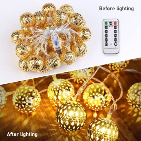 Guirlande lumineuse LED d'intérieur - Guirlande lumineuse USB - 30 boules marocaines argentées avec télécommande - Pour chambre, balcon, fête de mariage, anniversaire, Noël, sapin de Noël - 4,5 m - Blanc chaud ➤ La guirlande lumineuse au design romantique et minimaliste vintage est universelle et diffuse également une lumière beaucoup plus agréable que les ampoules à incandescence. Guirlande lumineuse USB pour l'extérieur peu d'électricité et ne produit presque pas de chaleur, elle est sans danger pour les enfants et les animaux domestiques. Guirlande lumineuse LED d'intérieur - Guirlande lumineuse USB - 40 boules marocaines argentées avec télécommande - Pour chambre, balcon, fête de mariage, anniversaire, Noël, sapin de Noël - 6 m - Blanc chaud La guirlande lumineuse au design romantique et minimaliste vintage est universelle et diffuse également une lumière beaucoup plus agréable que les ampoules à incandescence... Minuterie et luminosité réglables : chaque guirlande lumineuse LED est livrée avec une télécommande sans fil. Crée une ambiance agréable dans n'importe quelle pièce. Allumez la guirlande lumineuse LED via un chargeur USB 5 V ou d'autres appareils d'alimentation. Guirlande lumineuse d'intérieur à 30 LED blanc chaud : guirlandes lumineuses orientales élégantes, 30 boules marocaines décoratives argentées dans une guirlande lumineuse de 4,5 m. Pour ce faire, le mode réglé reste éteint et rallumé, vous n'avez donc pas besoin de chercher les anciens modes encore et encore. Matériau de la boule : métal argenté Câble : transparent 8 modes : combinaison, vagues, séquentiel, Slo-Glo, Chasse clignotant, fondu lent, scintillement, lumière continue. La guirlande lumineuse LED peut utiliser des boutons sur la télécommande ou le bouton sur la prise USB pour sélectionner différents motifs de lumière. Rideau lumineux de Noël 3 m guirlande lumineuse rideau fenêtre intérieure USB blanc chaud 10 Guirlande Led Usb Guirlande Lumineuse Led Intérieure,Guirlande Lumineuse Usb,30 Boules Guirlande Led 100m Facile à installer : allumez la guirlande lumineuse marocaine via un chargeur USB 5 V ou d'autres appareils d'alimentation.