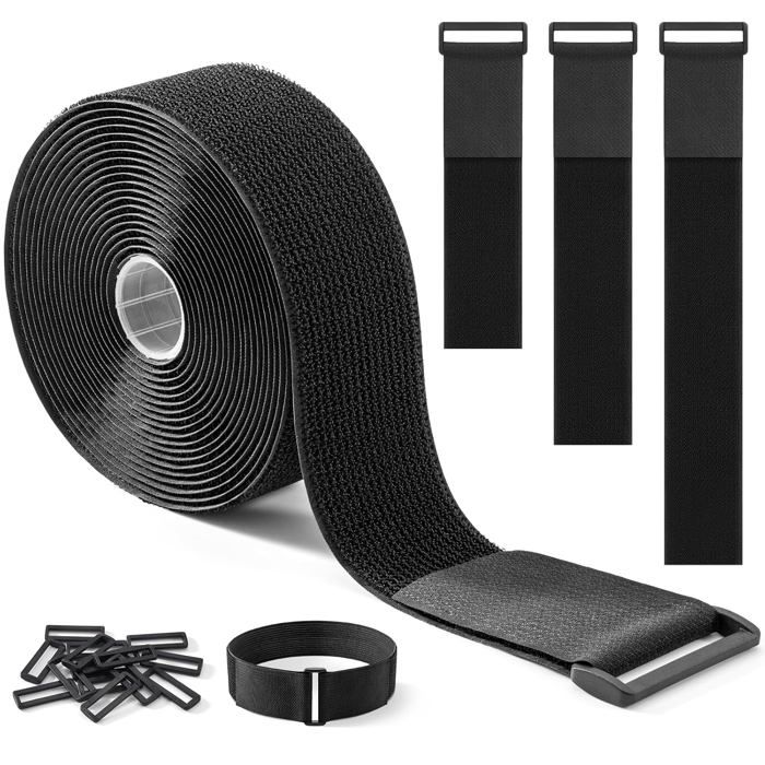 Attache Câble Adhésif, 10m x 25mm Sangles de Câble avec 20 Boucles en Contenu de l'emballage : 100 attaches de câble. Taille : 150 mm × 12 mm. La couleur Noir. Réutilisables et Réglables: ils sont à la fois réutilisables et... Sangles Auto-agrippantes De 12,2 M Avec 60 Boucles, Sangles Matériau : nylon ; taille : 30,5 cm (L) x 2,3 cm (l); Lot de 10 sangles pratiques pour une utilisation en intérieur et en extérieur; Solide et réutilisable...