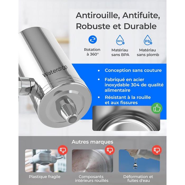 Durabilité et confort en un seul produit ! Ce robinet de cuisine AQUAFLOOW en acier argenté est un mitigeur chaud et froid avec un bec pivotant. Il mesure 225 mm de hauteur sous bec et 380 mm de hauteur... Robinet De Cuisine Avec 2 Modes De Pulvérisation, En Acier Inoxydable Robinet De Cuisine A 360 Pour Eau Chaude Et Froide 96004385 💧 EAU FILTRÉE DIRECTEMENT DU ROBINET – En combinaison avec le système de filtration Aquafloow, le robinet fournit de l'eau saine et savoureuse, éliminant 99 % du goût de chlore et préservant les minéraux essentiels. Carafe Brita Aquafloow Robinet De Cuisine Avec Raccord Pour Filtre à Eau Robinet Filtration Eau De Pluie Idéal pour les systèmes d'osmose inverse et de filtration d'eau, il vous permet, à vous et à votre famille, de profiter d'une eau pure et saine directement depuis votre robinet de cuisine ou d'évier de bar 🛠️ ACIER INOXYDABLE DE HAUTE QUALITÉ & DURABILITÉ – Le robinet de cuisine en acier inoxydable brossé est robuste, résistant à la corrosion et conserve son aspect élégant pendant de nombreuses années. Parfait pour toute cuisine.