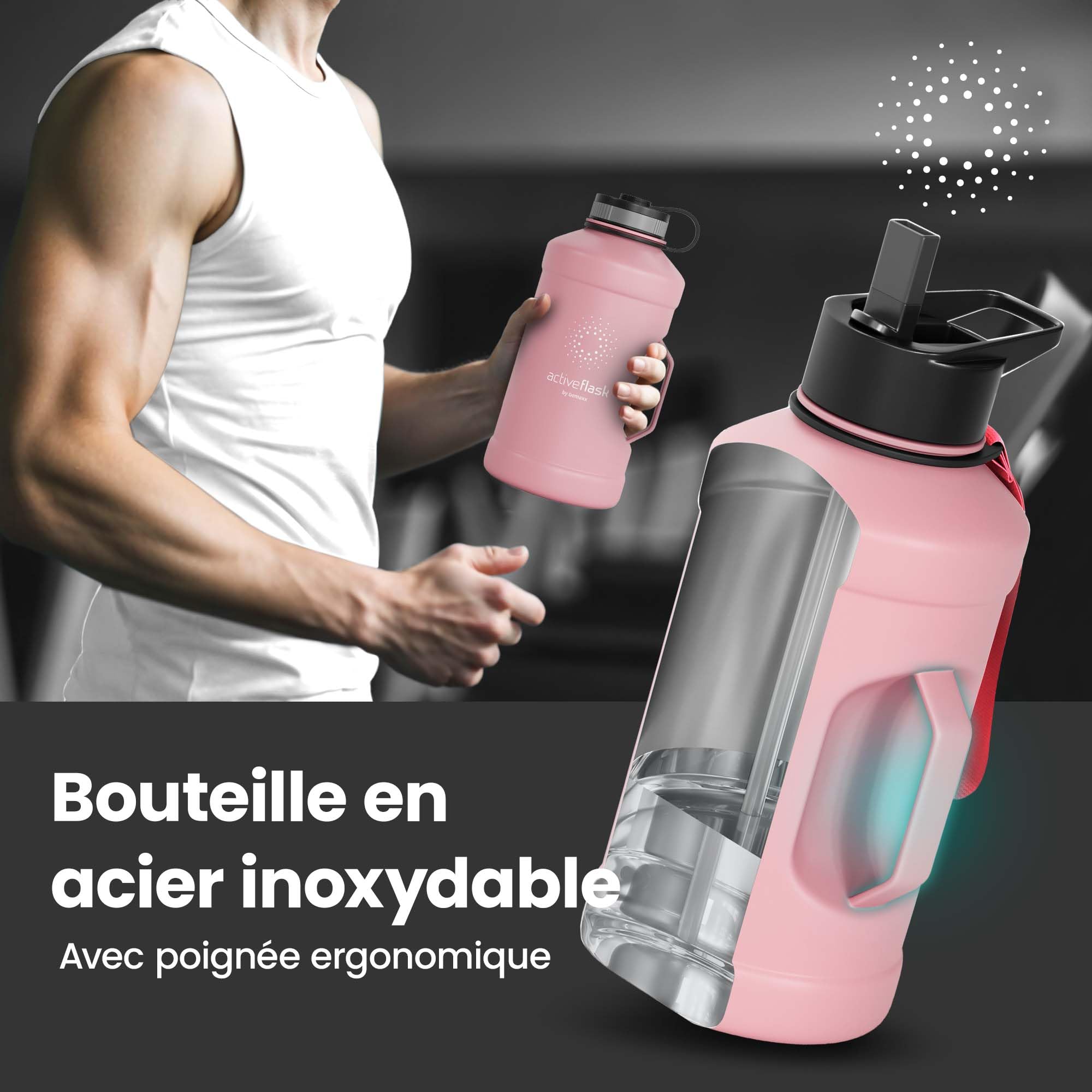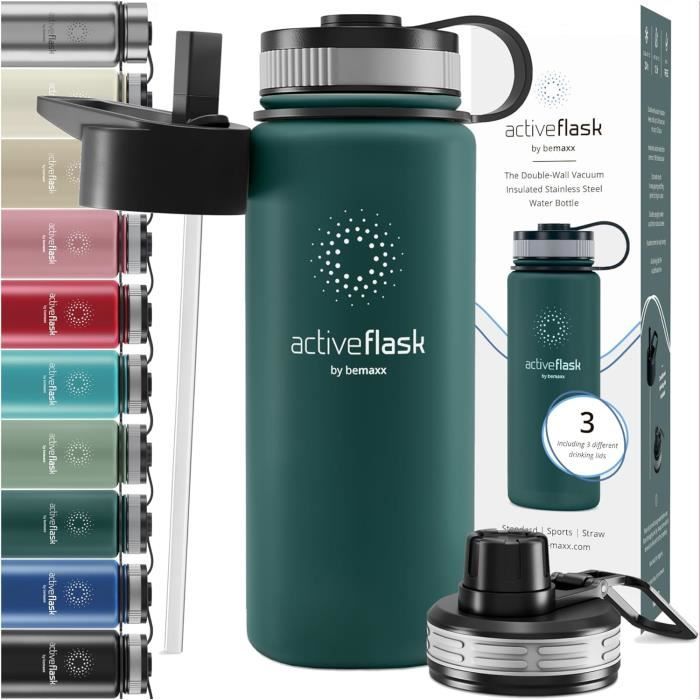 Hauteur : 21 cm, Ø 10,1 cm, volume : 1,3l, poids : 235g. Gourde Sport BeMaxx Gourde En Acier Inoxydable ACTIVE FLASK Paille (3 Couvercles) | Grande Bouteille De Sport Gourde Inox 2l <br/💧 𝗙𝗔𝗖𝗜𝗟𝗘 À 𝗡𝗘𝗧𝗧𝗢𝗬𝗘𝗥 𝗘𝗧 À 𝗥𝗘𝗠𝗣𝗟𝗜𝗥 𝗚𝗥Â𝗖𝗘 𝗔𝗨 𝗚𝗢𝗨𝗟𝗢𝗧 𝗨𝗟𝗧𝗥𝗔 𝗟𝗔𝗥𝗚𝗘 - Grâce à son rebord intérieur arrondi et à son goulot large et pratique, le nettoyage et le remplissage, même avec des glaçons, deviennent un jeu d'enfant. Si vous n'êtes pas satisfait, il vous suffit de vous adresser à notre assistance 24 heures sur 24, 7 jours sur 7 et nous trouverons certainement une solution satisfaisante pour vous. Certifiée par Food contact, la composition de la bouteille signifie que les odeurs/mauvais goûts ne gâcheront pas votre boisson. ATTENTION : CE N'EST PAS UNE BOUTEILLE THERMOS ! 💧 𝟭𝟬𝟬 % ACIER INOXYDABLE, SANS BISPHÉNOL A - Acier inoxydable 18/8 brossé de qualité qui bloque les odeurs et les mauvais goûts. Süßigkeiten Zueinander in Beziehung stehen Takt active flask flasche Bus Menstru - Avec ces 3 bouchons différents (standard, sport et PAILLE) 100 % étanches, vous pourrez remplir votre Active Flask de n'importe quelle boisson en un clin d'œil et faire face à tous les défis du quotidien. Les bouchons ne contiennent ni bisphénol A ni phtalates. BeMaxx Gourde en acier inoxydable ACTIVE FLASK paille (3 couvercles) | Grande bouteille de sport 2,2 litres / 2l XL sans BPA antifuite gazéifiée, Pour les... ATTENTION : CE N'EST PAS UNE BOUTEILLE THERMOS ! gourde vélo isothere