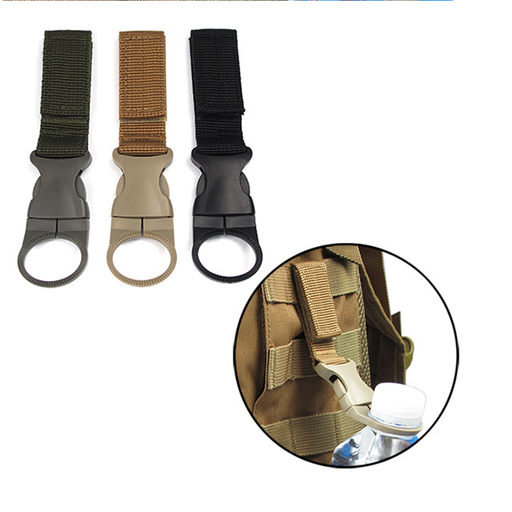 Crochet de mousqueton en métal, ceinture en nylon épais, avec porte-clés noir, durable et pratique. Les supports de bouteille peuvent être utilisés en toute sécurité pour attacher de l'eau, du soda ou d'autres bouteilles à votre vélo, tractor, moto, sac de golf, ceinture, boucle de ceinture ou n'importe quel autre endroit où vous pouvez placer vos images, librement sur vos mains. Pratique à transporter dans votre vie quotidienne, il est un outil multifonction, ce qui vous aidera dans de nombreuses situations., Couleur : noir. Outil pratique pour transporter des bouteilles en camping, randonnée et voyage. Mousqueton Tactique Outdoor Portable Water Quickdraw Carabiner Tactical Backpack Webbing Water Bottle Buckle Hook Travel Tool Clip Noir2 Gear Aid Taktische Molle Schnalle Wasser flasche Karabiner haken Gurtband Befestigungs gü Matériel: nylon et plastique , Dimensions : 14,5 x 2,5 cm., Poids : 21 g.