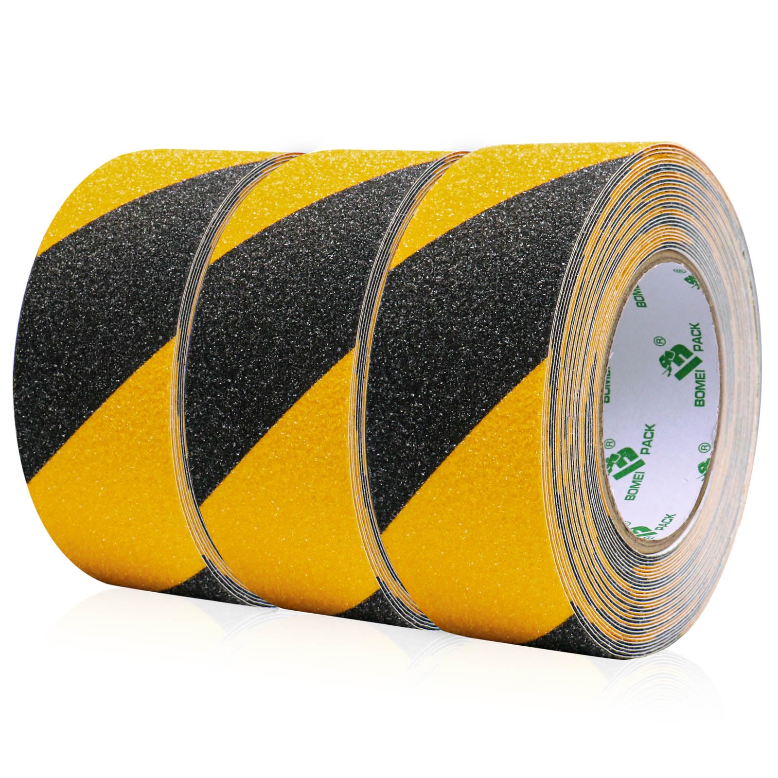 BOMEI PACK Lot de 3 rouleaux de ruban adhésif antidérapant Jaune et noir 50 mm x 10 m Haute adhérence forte adhérence pour marches d'escalier Bande adhésive antidérapante - Plaque Signalétique Multifonction : bande antidérapante durable, idéale pour une utilisation en intérieur, empêche votre enfant, la famille, les personnes âgées et les animaux domestiques de glisser sur les surfaces glissantes. adh sif plus fort. sceller les d chirures et les trous dans les tentes et les chapiteaux. Le ruban tanche ne d collera pas des surfaces pendant l'utilisation et durera longtemps, L'id e du ruban adh sif r sistant pour toutes les r parations, la construction, l'artisanat, l'emballage, la fixation ou le cerclage il peut tre utilis pour r parer instantan ment les conduits, tuyaux, tuyauteries et tissus. Bande antidérapante : les bandes antidérapantes augmentent la sécurité de votre lieu et aident à maintenir une culture de sécurité réduisant le risque de blessures et de fractures Chaque rouleau fait 5cm de large sur 10m de long - donc 20m au total. Facile à poser : nettoie la surface, découpe à la taille voulue et colle. Résiste à l'eau... Parfait pour protéger les enfants, les personnes âgées et même les animaux sur les carrelages glissants, les marches d'escalier, les rampes, les docks... Bref... 3 rouleaux par paquet : 5 cm de large x 10 m de long, longueur totale de 30 m pour la sécurité des escaliers BOMEI PACK Lot De 3 Rouleaux De Ruban Adhésif Antidérapant