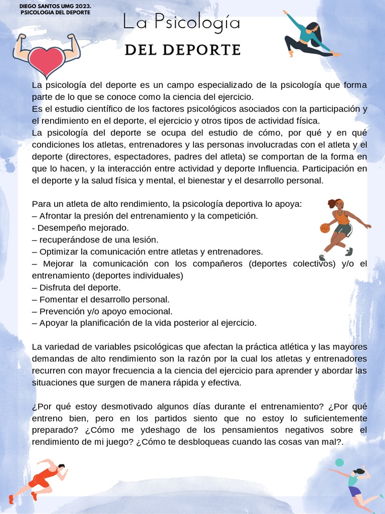 Ya disponible el libro Introducción a la Psicología del Deporte 40 años dpués de la INDE Editorial que un homenaje al primer libro de Psicología del Deporte en pañol (Introducción a Con el texto Introducción a la psicología del deporte y la actividad física el Centro para la Aplicación y Estudio de la Psicología Deportiva (CAEPD), sus colaboradores y colegas invitados proponen un recurso escrito que sirva para explicar los fenómenos, dinámicas, procesos y alcances que se procuran trabajar desde esta disciplina... Psicología Deportiva Beneficios Introducción A La Psicología Del Deporte | Dcargar Gratis PDF | Sicología | Deport Cual Es La Psicologia Del Deporte Su lectura permite entender mejor lo que sucede en el interior de un atleta, un equipo y/o todo aquel que procura en la actividad física alcanzar un sentido de...