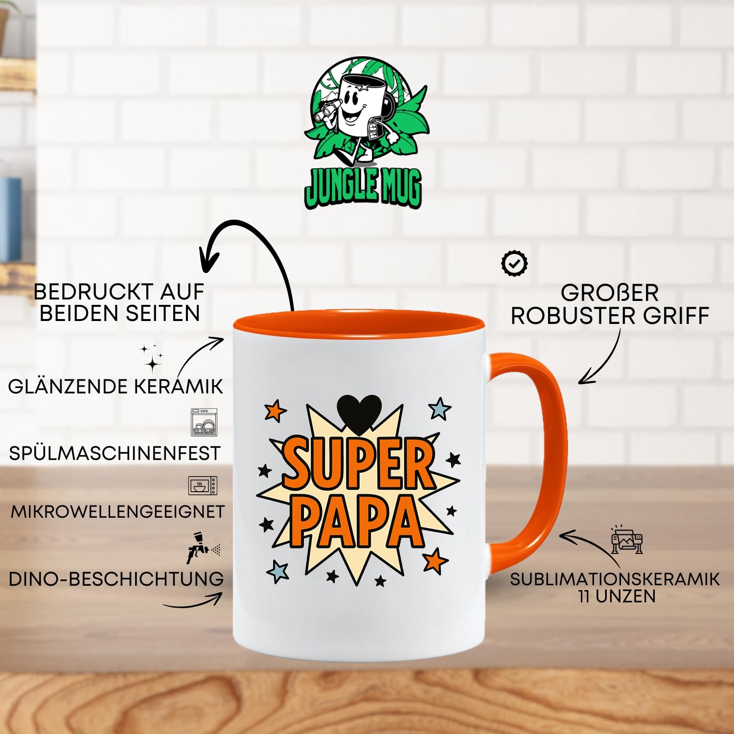 Cette tasse en céramique de qualité supérieure avec inscription « Ich liebe dich Papa » est un cadeau parfait pour papa. Trendaton Tasse Trendaton - Papa und Opa Tasse Geschenk für Opa Jungle Mug Tasse avec inscription en allemand « Cette tasse de 11 onces avec l'impression inspirante « La vie est avec la joie » est le cadeau idéal pour les personnes à la retraite... Vous cherchez un cadeau personnel mais simple ? Alors cette tasse papa est le choix parfait. Un rappel pratique du lien profond entre le père et l'enfant, chaque jour. Cette tasse conçue avec soin est une merveilleuse façon de dire merci au meilleur papa du monde. Fabriquée en céramique robuste, elle passe au micro-ondes et au lave-vaisselle – parfaite pour les moments quotidiens de café, de thé ou de cacao. Peut également être utilisé comme cadeau pour maman en version convertie – parlez-moi simplement si vous avez besoin d'une variante maman L'intérieur bordeaux et la poignée assortie rendent cette tasse non seulement spéciale visuellement, mais aussi adaptée à un usage quotidien. Elle allie émotion et fonctionnalité et montre avec style à quel point papa est apprécié. Cadeaux pour la fête des pères : surprenez votre papa pour la fête des pères avec une tasse à café élégante et pratique qui embellit chaque matin. Tasse à café emballée dans un emballage sûr, prête à offrir, sans effort supplémentaire Super Papario Tasse à Café Avec Inscription En Allemand « Bester Papa Vertertag » Comme Cadeau De Fête Des Pères Ou D'anniversaire La tasse n'est pas seulement un bel accessoire pour la cuisine, mais aussi un symbole d'amour, de gratitude et d'appréciation.