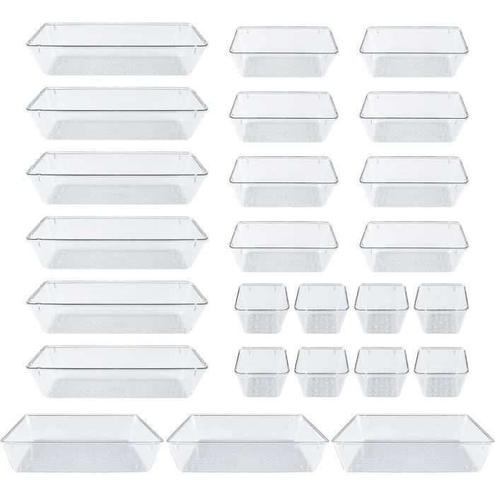 Simple Houseware Lot de 4 grands organisateurs de tiroirs en plastique transparent Rendez vos tiroirs organisés et agréables avec nos récipients transparents. Matériau transparent avec plastique incassable sans BPA. Idéal pour les tiroirs de maquillage, les tiroirs de salle de bain, les tiroirs de bureau et d'artisanat., ., ., etc. Organisateurs de tiroirs Tiroir coulissant YouCopia DrawerFit avec séparateurs réglables Organisateur de rangement de cuisine extensible Blanc moucheté 51,75 € Livraison gratuite Prix après Cashback 51,75 € Rev tement pais et solide pour tiroirs et tag res Gorilla Grip, non adh sif 68,37 € Livraison gratuite Prix après Cashback 68... Organisateurs de tiroirs, panneau en plastique Boîte de rangement sous... Rangement Pour Produits Cosmétiques Lot De 4 Organisateurs De Tiroirs En Plastique Pour Cuisine, Paniers De Boite Acrylique Klarer Kunststoff Acryl Küche Pantry Organizer Kühlschrank Lagerung Obst Schubla