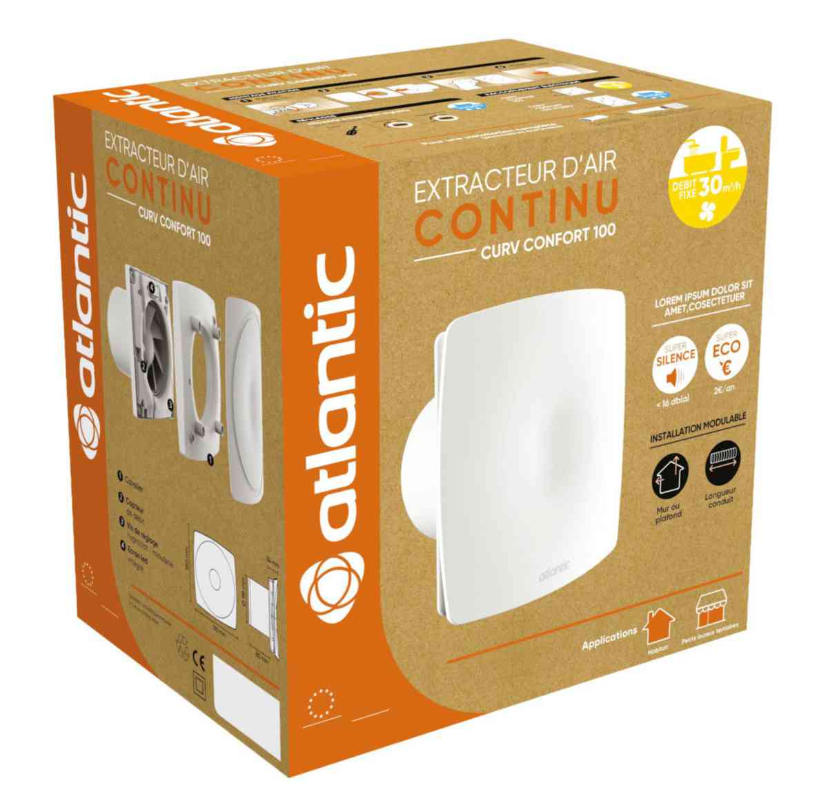 Extracteur intermittent pour conduit court. Utilisable en extraction ou en soufflage. Mise en route par interrupteur va et vient. Ventilateur de conduit... aérateur d'air - atlantic vco 100 - 100 m3/h - permanent - atlantic 123097, en stock VCO ATLANTIC Extracteur d'humidité silencieux et compact, modèle "VCO 100" Atlantic. Extracteur d'air permanent 100 HY Curv Confort Atlantic 123237... Climatisation Atlantic Extracteur De Conduit | Ventilation Individuelle Vmc Hygroréglable Extraction d'air permanente Curv Confort