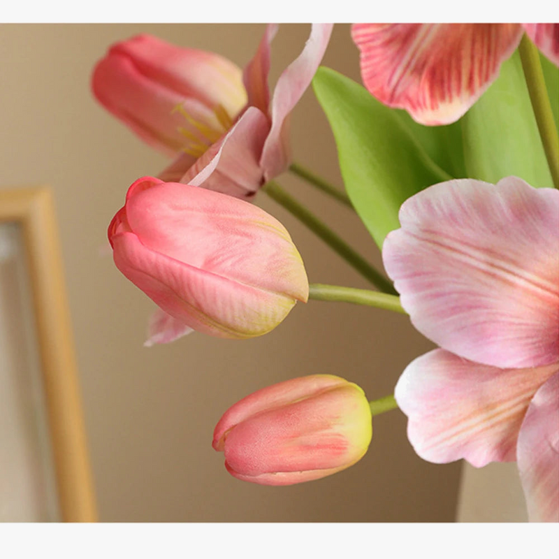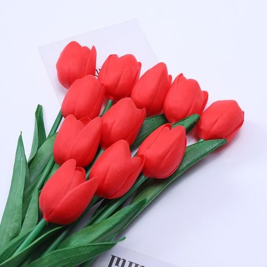 Ces tulipes artificielles réalistes sont idéales pour les mariages, les fêtes et comme décoration florale pour votre maison. Installation et décoration faciles : insérez les tulipes artificielles dans des vases, des pots ou directement dans de la terre et du gravier. Leur taille naturelle en fait une décoration élégante pour tout événement. WE10682 Fleurs artificielles. 5 10 20 30 pièces. Bouquet de fausses Parfait pour les personnes allergiques au pollen, car il n'émet pas de pollen. Tulipes Artificielles Au Toucher Lot De 10 Réaliste Pour La Maison Tulipes Au Toucher Réaliste Multifonction : ces tulipes artificielles sont idéales pour les bouquets de mariage, les bouquets de mains et les compositions florales. Durable et facile à nettoyer : nos tulipes ne nécessitent aucun entretien et conservent leur beauté pendant des années. Elles peuvent être utilisées dans des vases, des pots de fleurs ou comme décoration de table, idéales pour tout événement ou décoration de chambre. La description: Paramètres du produit Nom: PU Tulipe Poids: 12 grammes Spécifications du produit: PU (la tige florale contient du fil de fer) avec une hauteur totale d'environ 34cm Bons conseils: Les branches de fleurs artificielles sont faites à la main. Pendant le processus de transport, les branches et les feuilles des fleurs peuvent être légèrement déformées en raison de l...