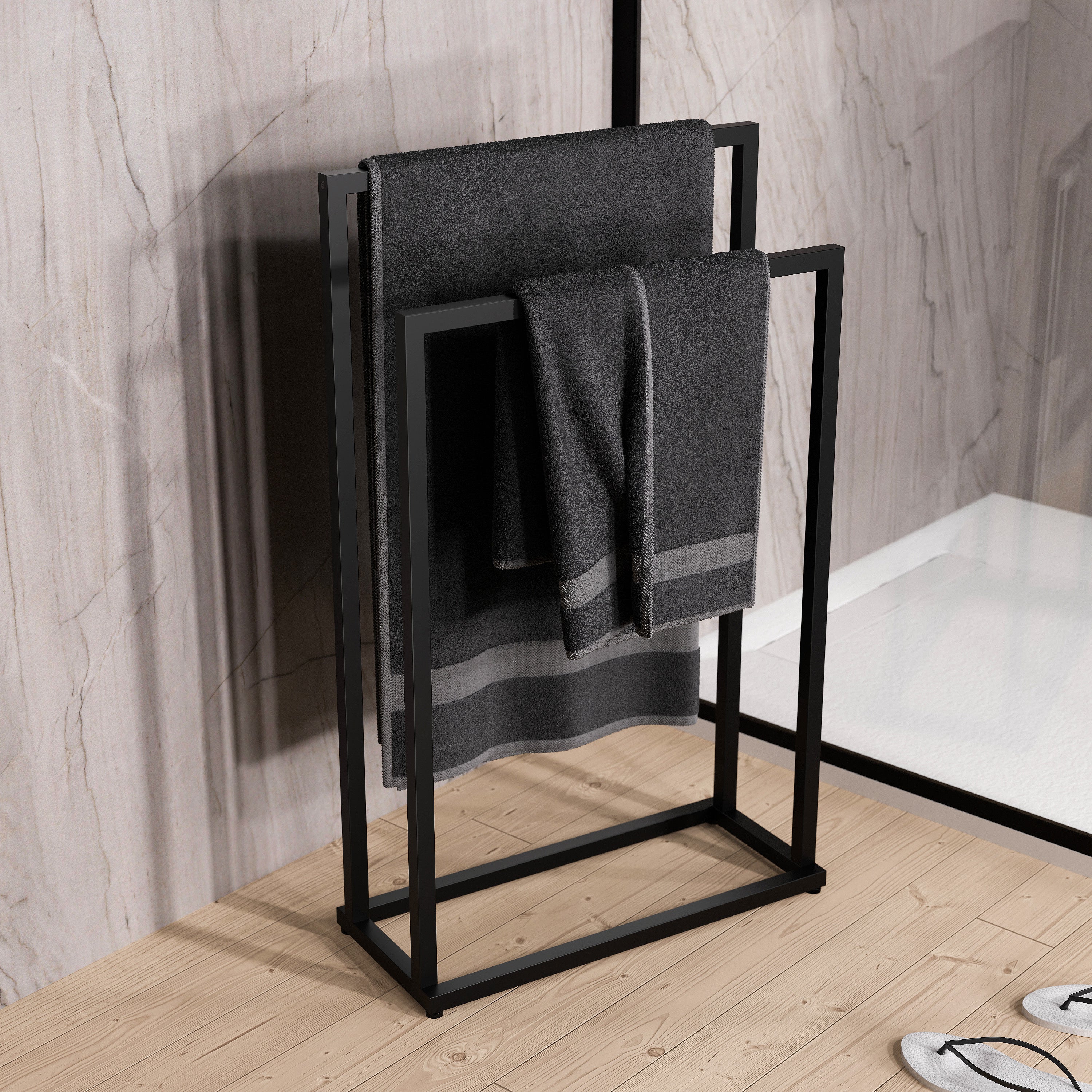 Avec ce porte-serviettes, vos serviettes sont à portée de main sur le lavabo et bien rangées pour sécher. DESIGN MODERNE ET FORMES ANGULAIRES : La forme rectangulaire minimaliste apporte une esthétique moderne à votre intérieur. Idéale pour un usage quotidien dans les salles de bains modernes ou contemporaines. LONGUEUR PARFAITE DE 39 CM POUR TOUS TYPES DE SERVIETTES : Avec ses 39 cm de longueur, cette barre murale permet de suspendre efficacement serviettes de bain, essuie-mains ou linge de toilette. PORTE-SERVIETTES COMPACT POUR MEUBLE DE SALLE DE BAINS Disponible en trois finitions tendance : chrome brillant, noir mat élégant ou bronze / Gun metal brossé pour une touche industrielle raffinée. Convient aussi bien aux petits espaces qu’aux grandes salles d’eau. BARRE PORTE-SERVIETTES DESIGN EN ACIER INOXYDABLE : Conçue en acier inoxydable de haute qualité, la barre HH39 offre une excellente résistance à la corrosion et à l'humidité. LONGUEUR PARFAITE DE 39 CM POUR TOUS TYPES DE SERVIETTES : Avec ses 39 cm de longueur, cette barre murale permet de suspendre efficacement serviettes de bain, essuie-mains ou linge de toilette. MONTAGE MURAL SIMPLE ET RAPIDE : Installation facile grâce au matériel de montage inclus. Idéale pour un usage quotidien dans les salles de bains modernes ou contemporaines. DISPONIBLE EN CHROME, NOIR MAT ET BRONZE : Adaptez votre barre au style de votre salle de bain. Porte Serviette À Double Barre Salle De Bain, Sèche Serviette Mural Meuble Serviette Salle De Bain BERNSTEIN - Barre Porte Serviette Design Mural En Acier Inoxydable Pour Salle De Bain Et Toilettes 35x69x3cm Noir Sdvhr 77089460 Barre Seche Serviette Fixation murale robuste assurant une tenue stable, même pour les serviettes épaisses ou mouillées., Instructions claires fournies.