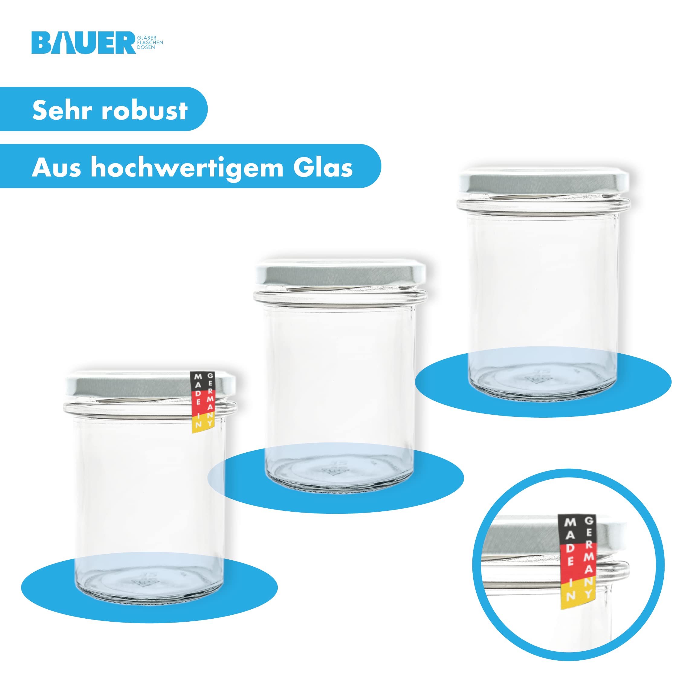 Fabriqués en Allemagne à partir de verre clair de haute qualité, ces bocaux sont parfaits pour les conserves maison. [UTILISATIONS VARIÉES] Idéals pour conserver des épices, herbes, thés ou pour la préparation de confitures, gelées et autres spécialités faites maison. [IDÉES CADEAUX CRÉATIVES] Ces bocaux peuvent être utilisés comme cadeaux personnalisés pour des anniversaires ou la fête des mères – parfaits pour des mélanges de thé, confitures, sels aux herbes ou mini gâteaux maison. 50er Deckelset TO66 Gold I Twist-Off-Deckel für Sturzgläser I Rundrand Dimensions : 6,35 cm × H 9,7 cm · Contenance : 214 ml · Poids : 125 g par bocal. [UTILISATIONS VARIÉES] Idéals pour conserver des épices, herbes, thés ou pour... Bocaux Twist Off Par Lot BAUER Lot De 24 Bocaux Droits 214 Ml Avec Couvercles Twist Couvercle Pour Bocaux Large gamme de bocaux et bouteilles, avec des décennies d'expérience et d'expertise dans le domaine du conditionnement en verre.