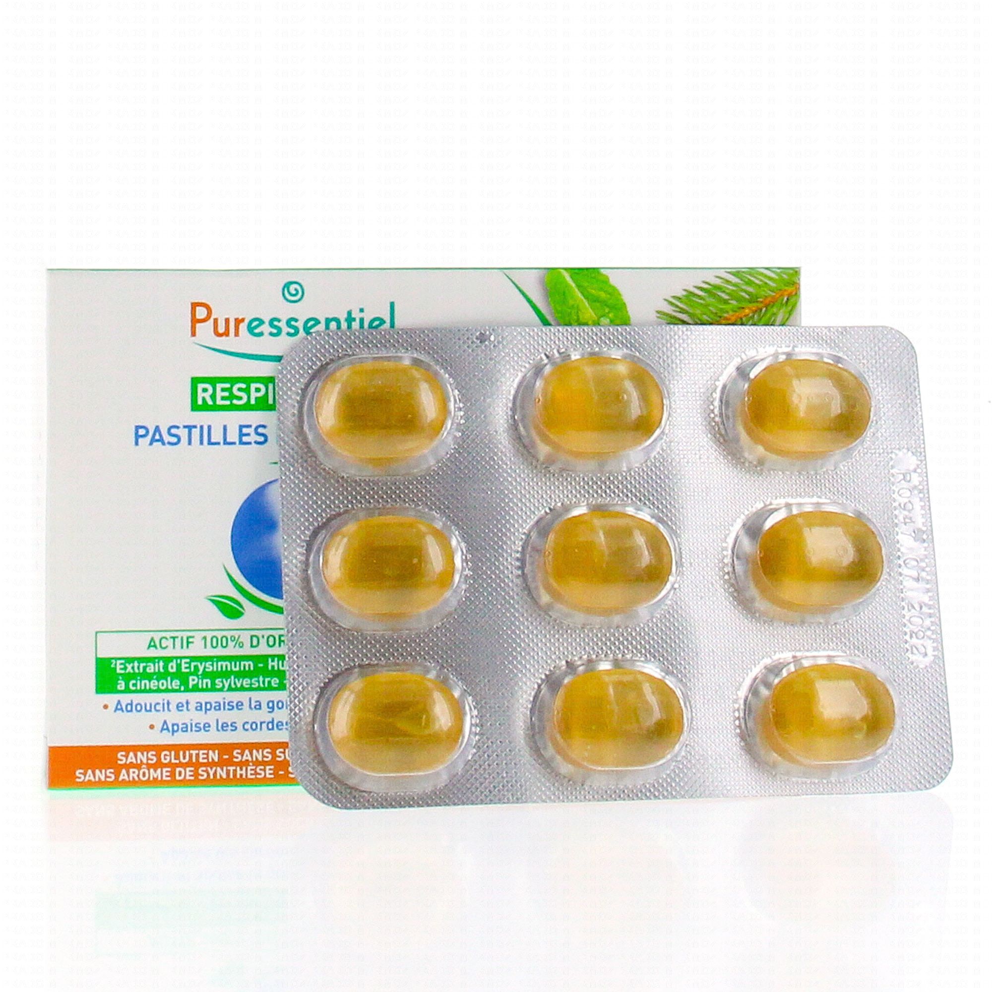 Ne se substitue pas à une alimentation variée et équilibrée et à un mode de vie sain. MODE D'EMPLOI : 3 à 6 gommes par jour pendant 5 jours maximum. Une consommation excessive peut avoir des effets laxatifs. Pour une bonne respiration et une bonne ouïe : goutte, spray, sirop Puressentiel respiratoire pastilles menthe-pin 18 pastilles est un complément alimentaire à l'actif 100% d'origine naturelle pour adoucir et apaiser la gorge en cas d'enrouement et apaisent les cordes vocales fatiguées (erysimum). Ne consommez pas plus de 10 à 15 gommes par jour. LE NATUREL AU COEUR D'UN VERITABLE SAVOIR-FAIRE : Notre engagement constant est garant de produits d'une qualité la plus pure et naturelle possible. Description du produit Les gommes Menthe - Eucalyptus sont composées de gomme d’acacia, associée aux huiles essentielles de menthe des champs et d’eucalyptus globuleux. Lire la notice avant utilisation. Les gommes adoucissantes Puressentiel à base d'huiles essentielles (menthe des champs et eucalyptus globuleux) aident à adoucir la gorge et dégager les voies respiratoires Pour les adultes et les enfants de plus de 12 ans. Déconseillé aux femmes enceintes ou allaitant, et aux enfants de moins de 7 ans Mode d'emploi 3 à 6 gommes par jour pendant 5 jours maximum Avertissement De Sûreté Ces gommes sont déconseillées aux femmes enceintes ou allaitant, et aux enfants de moins de 7 ans. APAISEZ VOTRE GORGE : Les gommes menthe eucalyptus Respiratoire Puressentiel contiennent de l'huile essentielle de menthe à l'effet apaisant sur la gorge, le pharynx et les cordes vocales. Puressentiel Gommes Menthe-Eucalyptus Respiratoire Apaisant pour la... Ingrédients Gomme de tige et de branches d'acacia (Acacia senegal) (3,6g), édulcorants : sirop de sorbitol, maltitol et glycoside de stéviol (1,1mg), huile essentielle de feuille de menthe des champs (Mentha arvensis) (72mg), huile essentielle de feuille d'eucalyptus (Eucalyptus globulus) (19mg), agent d'enrobage : cire de carnauba, huiles végétales de coco (Cocos nucifera L. ACTIFS 100% D'ORIGINE NATURELLE : Les gommes adoucissantes sont composées de gomme d'Acacia adoucissante, associée aux huiles essentielles de menthe des champs et d'eucalyptus globulus. Ne pas dépasser la dose journalière recommandée. Conseils d'utilisationEntre 3 à 6 gommes par jour pendant 5 jours maximum pour les adultes et enfants de plus de 7 ans. Tenir hors de portée des jeunes enfants. UN LABORATOIRE FAMILIAL ET INDÉPENDANT : Né en 2005 de la passion d'Isabelle et Marco Pacchioni pour l'aromathérapie et les actifs naturels, Puressentiel a bouleversé le marché des huiles essentielles et démocratisé l'aromathérapie avec ses produits « prêts à l'emploi ». Pastille Gorge Irritée Et Toux PURESSENTIEL Gommes Pour La Gorge Menthe Eucalyptus 45g Fervex Rhume