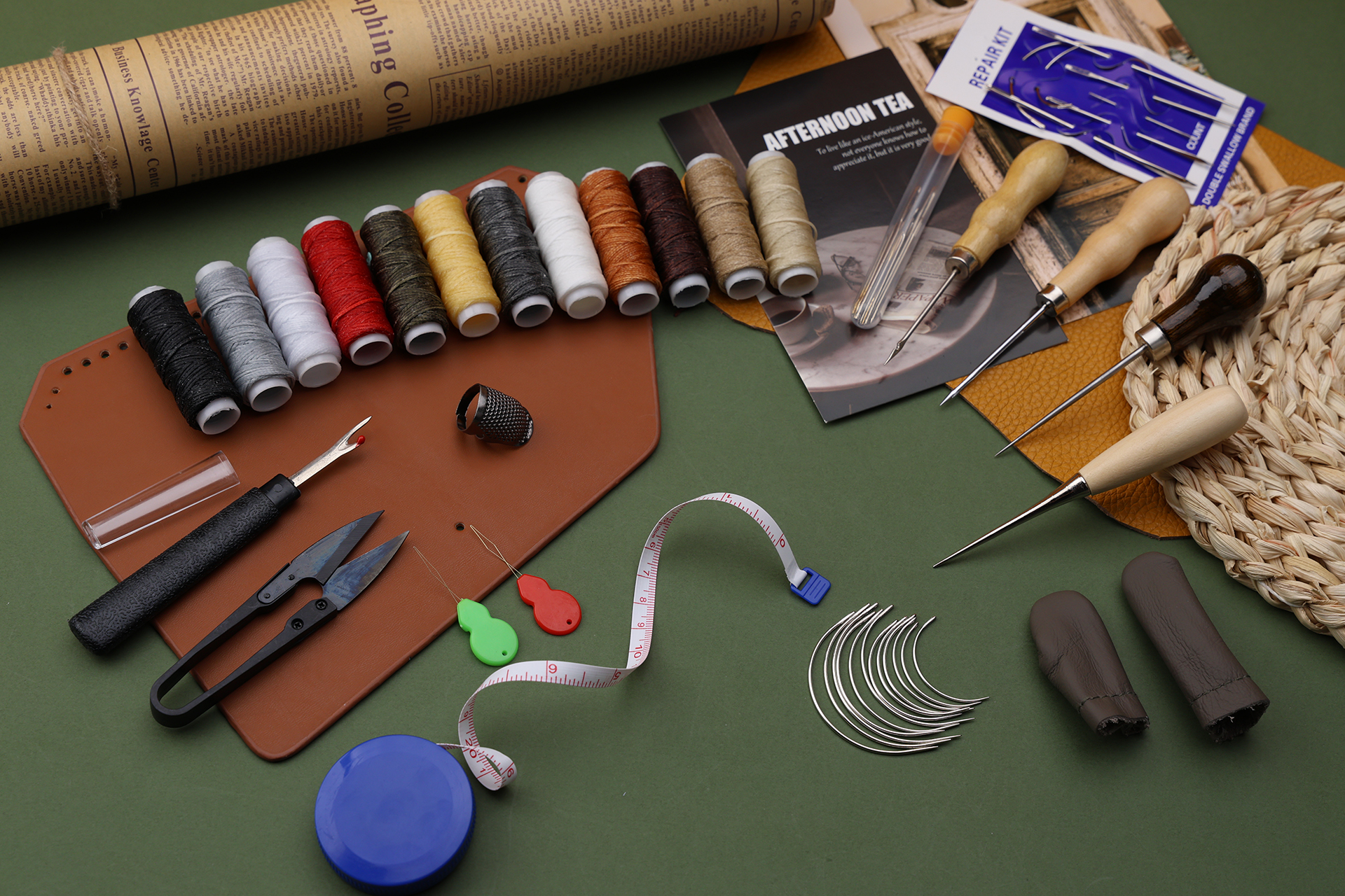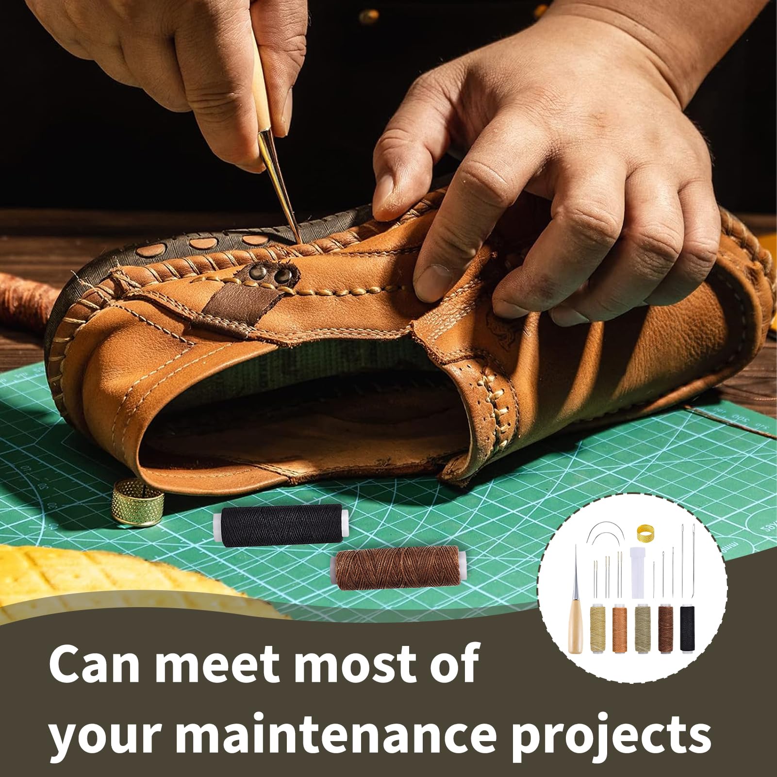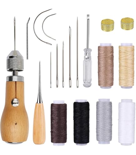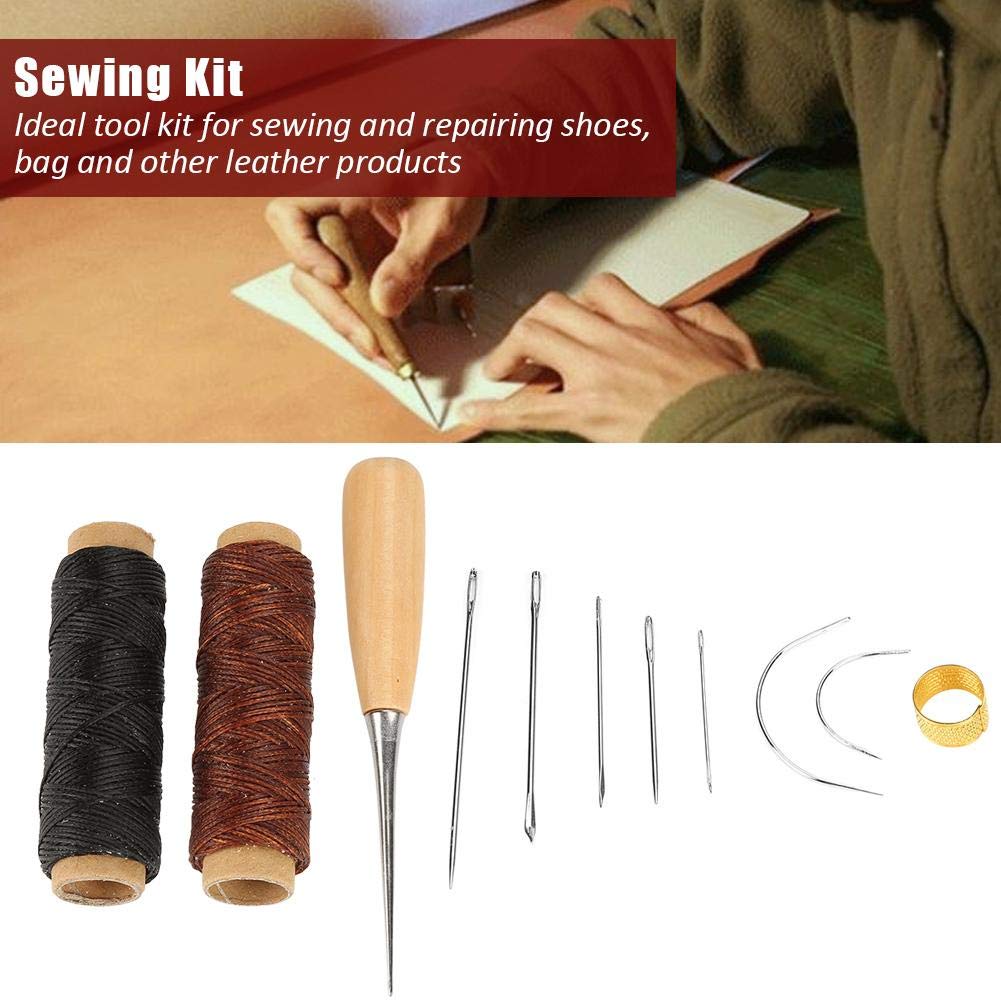 Atyhao Kit De Couture à La Main En Cuir, 11 Pièces Avec Fil Ciré, Aiguilles à Coudre Pour Loisirs Créatifs, Réparation De Sacs à Chaussures