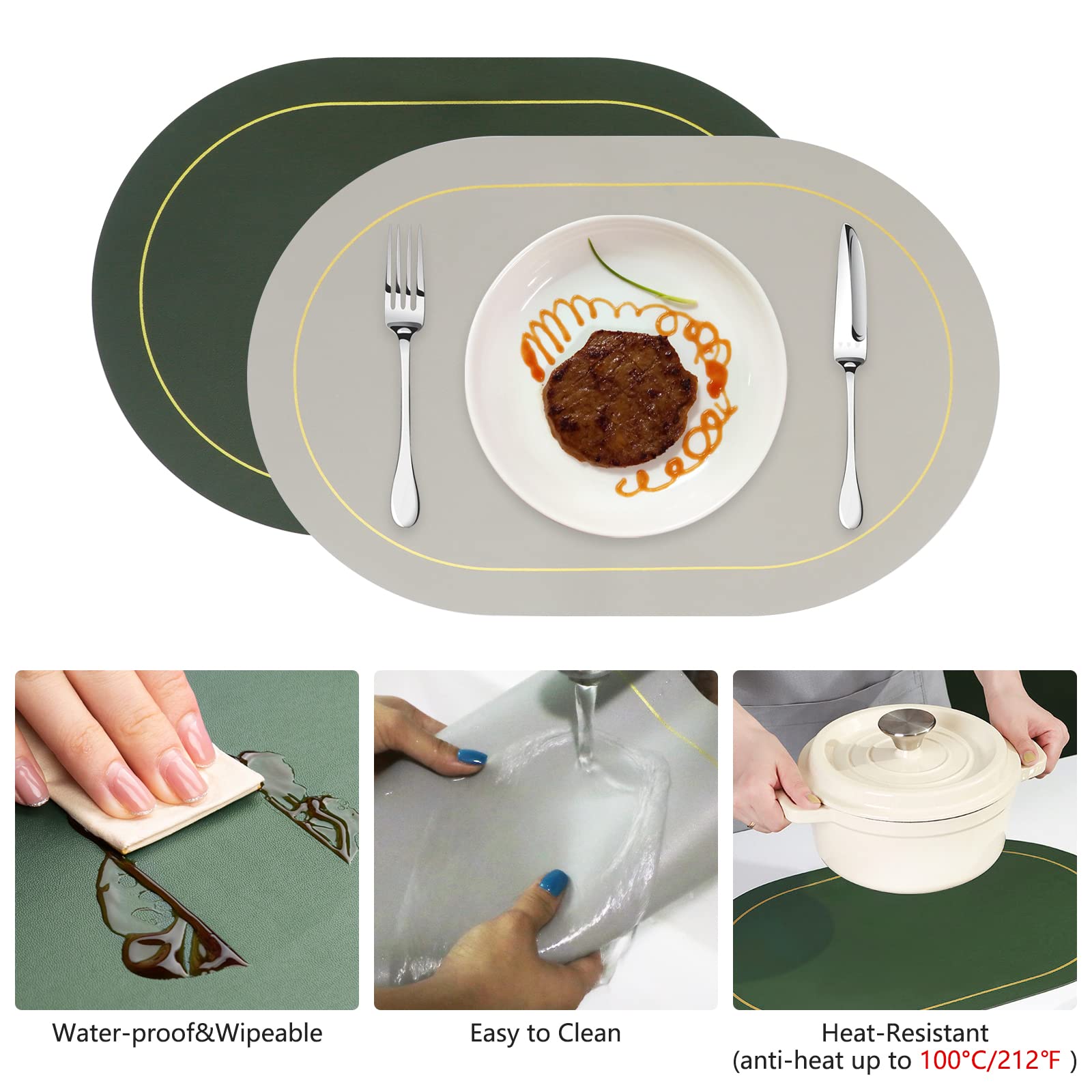 Excellente idée cadeau : le set de sets de table en cuir est un excellent cadeau de pendaison de crémaillère, de mariage ou d'anniversaire. Fabriqué en cuir synthétique de 2 mm d'épaisseur – 70 % PVC et 30 % polyester, durable, antidérapant, ignifuge, ne se décolore pas, résiste à la chaleur, sans odeur, très sûr à utiliser. DIMENSIONS : ensemble de sets de table de 4 à 19,7 pouces x 13,4 pouces (50 x 34 cm) et sont réversibles avec la même texture des deux côtés, un tapis couvrira plus de sol, de sorte que vous n'avez pas besoin de plusieurs plus petits, comme les sets de table de style rond requis Ajoutez une touche esthétique à votre table en mettant en valeur la vaisselle et les couverts. Antidérapants, ils restent bien en place même si tu tires dessus. Résistants à la chaleur jusqu'à 130°C, donc pas de souci avec les plats chauds. Imperméables... Les coins arrondis lui donnent un aspect plus élégant que certains avec des coins carrés. Deux combinaisons de couleurs au choix. Imperméable et résistant à la saleté : ces sets de table sont fabriqués en cuir synthétique, non poreux avec la reliure autour du bord, de sorte que les liquides ne pénètrent pas, imperméables, résistants à l'huile et aux taches, gardez votre table toujours propre et intacte Comme il est enroulé, les bords seront légèrement ondulés lors de la réception. Non poreux, empêche les liquides de s'infiltrer, imperméable à l'eau, pas de fuite. Ils aident à organiser visuellement une table à manger et servent de référence aux invités. Et s'ils sont gravement endommagés, ils sont beaucoup moins chers à remplacer. Les sets de table sont résistants à la chaleur et faciles à nettoyer. De même, vous devrez peut-être mettre des assiettes ou des bols chauds sur la table, ce qui peut endommager le bois ou la nappe. Vous devrez peut-être même acheter une nouvelle nappe ou faire repeindre la table. Sets De Table Réversibles En Cuir Synthétique Pour Salle à Manger Ces tapis imperméables retiennent les liquides renversés et peuvent être facilement nettoyés un par la suite. Possède une texture de surface légère qui crée un équilibre entre collant et glissant, les objets placés dessus peuvent être déplacés, mais ne glissent pas. La table peut être essuyée et la nappe jetée dans le linge et elle redevient comme neuve. Non poreux et empêchant les liquides de s'infiltrer. Chaque couleur est double face avec deux nuances différentes, de sorte que vous pouvez facilement changer votre style ou l'apparence de votre table à manger en retournant le set de table. Diese Tischsets sind hitzebeständig bis 212℉/100 ℃, aber es handelt sich nicht um ein Topflappen. Oui, vous avez besoin de ces sets de table., ., ., Grande taille : 50 x 34 cm, assez grand pour couvrir beaucoup d'espace, ce qui vous permet d'avoir de la place pour une assiette, des couverts, un bol et un verre sans qu'il soit trop plein. Nous vous recommandons d'utiliser d'abord le dos car l'autre côté est aplati pendant l'utilisation. Nous sommes heureux qu'un set de table ait préservé nos plateaux de table des accidents du vin rouge d'innombrables fois, mais c'est également un moyen peu coûteux et presque sans effort de changer la décoration de votre cuisine ou salle à manger. YOUEON Lot de 6 sets de table ronds lavables en cuir synthétique Pour éviter les plis, le colis que vous recevrez est enroulé comme indiqué sur l'image. Pour changer l'apparence de votre table à manger, il vous suffit de retourner le set de table. Facile d'entretien : les sets de table en cuir synthétique sont lavables, ne se décolorent pas, ne tachent pas. Si vous choisissez le bon tapis, même un simple repas peut être spécial Mais tous les déversements ne sont pas aussi inoffensifs. Pour le stocker, poser à plat ou enrouler, pratique pour un usage quotidien., Facile à nettoyer.