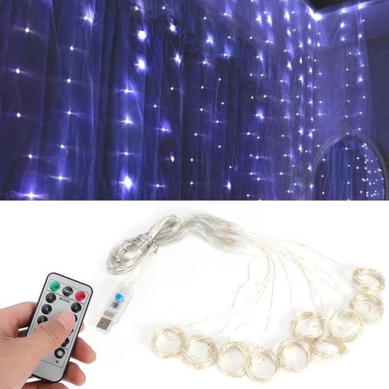 Peut créer une atmosphère romantique, douce et confortable dans n’importe quelle situation. 【Sûr à utiliser】 - Les guirlandes lumineuses à LED sont alimentées par une basse tension de 3,5 V à 5,0 V et sûres au toucher. Télécommande intelligente et alimentée par USB, aucune pile requise - mieux pour l’environnement. Guirlande lumineuse à rideau LED 3 m x 2 m pour réception de GUIRLANDE LUMINEUSE,Bleu-3X2M 200LED--Rideau lumineux LED avec... Guirlande Lumineuse Rideau Yizhet USB Rideau Lumineux 2x2m - LED 200 LED Avec Télécommande, Minuterie, 8 Modes, Etanche IP65 Pour Ramadan, Noël, Mariage (Blanc Froid Guirlande Rideau Lumineuse 10 x 20L suspendus vers le bas LED fil de cuivre, suspendus naturellement. 【Facile à installer et à façonner】 - Excellente flexibilité, le fil de cuivre pliable peut être facilement incorporé dans les formes souhaitées. Le rideau lumineux est facile à accrocher dans des endroits spéciaux. travaillent en synergie, offrent une plus grande couverture et donnent un léger effet de fée la nuit sans surchauffe. Non seulement sur les fenêtres, mais aussi sur les murs plats, le verre, les auvents, les avant-toits, etc.