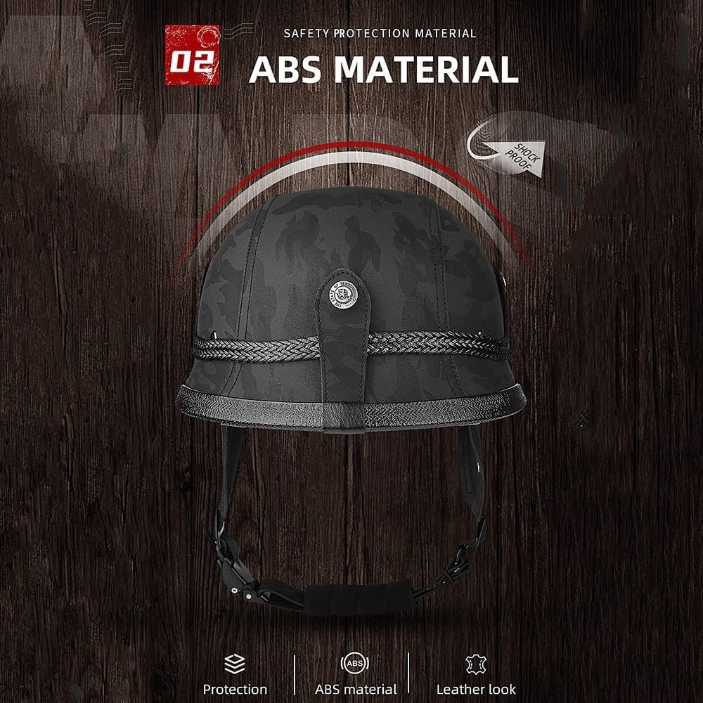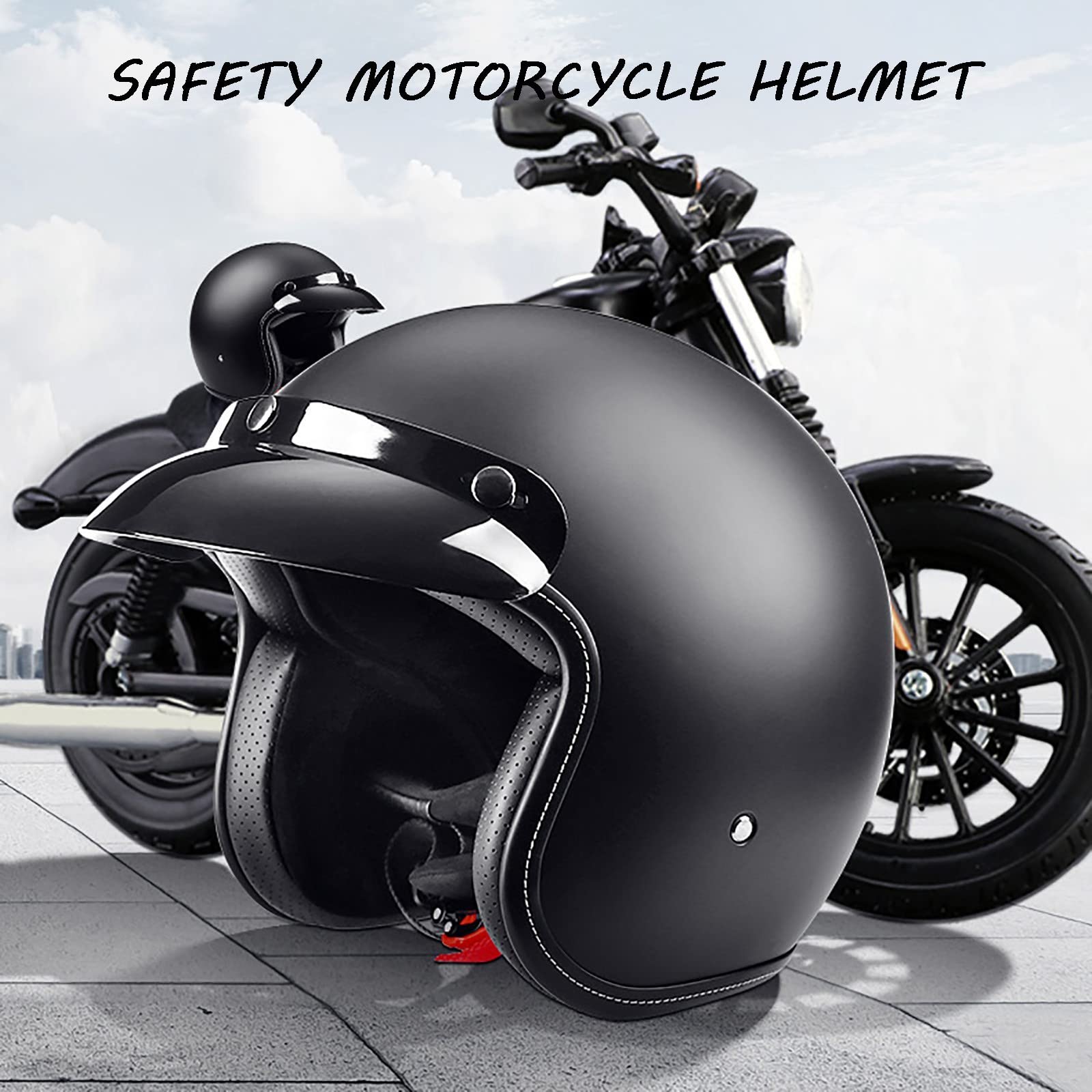 Face Ouverte Casque Demi Coque ECE Homologué Adultes Casque Jet Moto Vintage Avec Visière Cuir Casque Mobylette Bols Pour Scooter Locomotive Homme Et Femme 1,M:57-58CM