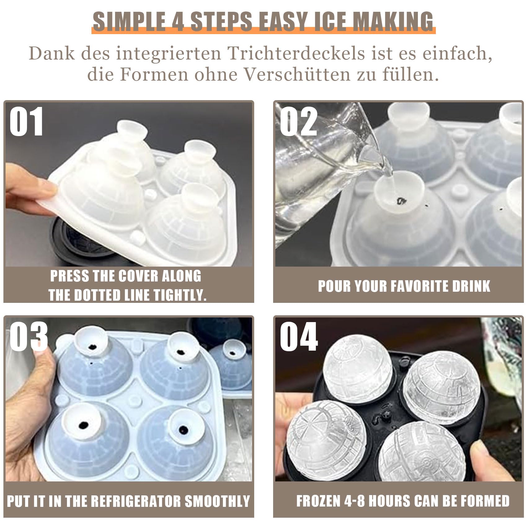 Matériaux de qualité supérieure : fabriqués en silicone de qualité alimentaire, ces moules sont inodores, sans BPA, résistants aux températures élevées et au froid et peuvent être utilisés en toute sécurité dans les réfrigérateurs et les micro-ondes. Livraison à 5,54 $ 23 juin - 16 juillet. Détails. Livraison après la fête des Pères. Besoin d'un cadeau rapidement? Envoyez une carte-cadeau par courriel ou par SMS Entrez votre adresse Habituellement expédié en 2 à 3 jours Quantité :Quantité C'est un moyen amusant d'exprimer votre personnalité. Moule Tete De Mort Moule à Glaçons Star Wars Étoile De La Mort En Silicone - 7 Cm - Avec Entonnoir - Pour Boissons Et Cocktails Moule Etoile En plus de faire des glaçons, ces moules peuvent également être utilisés pour faire du chocolat, de la gelée, du pudding, du savon, de la glace et bien plus encore. En silicone alimentaire de qualité, il crée des glaçons sphériques en 3D représentant l'étoile de la mort de Star Wars. Le couvercle intégré avec entonnoir... Hinapan Lot de 4 moules à glaçons en silicone (boule et étoile de la Le silicone souple facilite le retrait des glaçons et assure une expérience utilisateur sans effort et agréable. Boissons fraîches pour le plaisir : moules à glaçons ronds en silicone flottant sur vos boissons, apportez plaisir et attrait à la cuisine de tout fan de balle étoile de la mort.