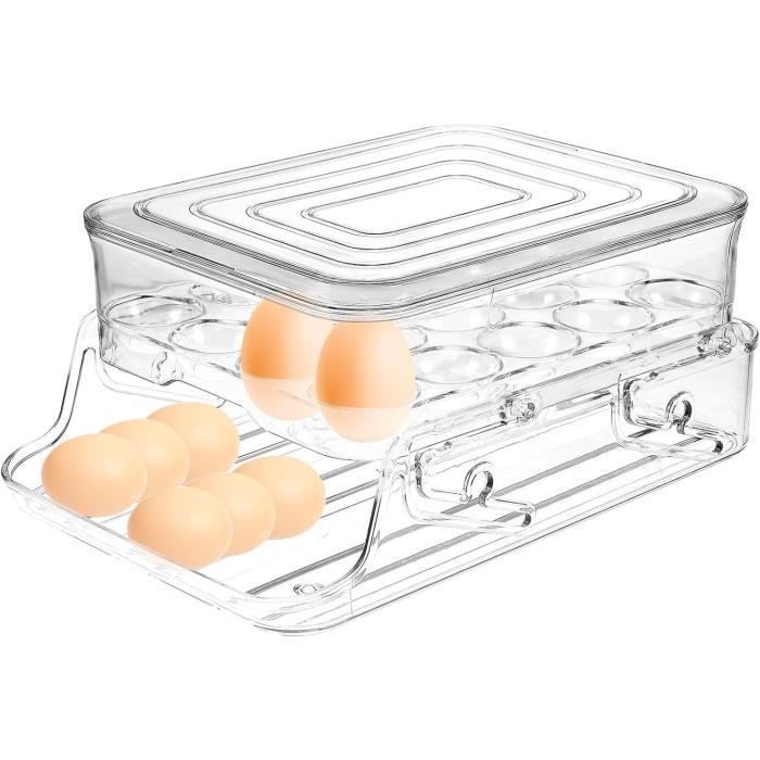 Peut contenir jusqu'à 10/18 œufs. Boite Oeufs Plastique Boîte à œufs Avec Tiroir, Empilable Boite A Oeuf, Panier Oeuf Oeufs 12 Peut résister à des températures de -20 degrés Celsius à 120 degrés Celsius. Informations sur le produit Détails techniques Fabricant Tuzsocr? Dimensions du produit ? 10Grille 27,5 x 13 x 6,8 cm; 165 grammes 18Grille 32 x 18 x 6,8 cm; 275 grammes Couleur : translucide. Conception empilable avec couvercle : ce récipient à œufs a des rainures circulaires sur le fond et le couvercle, ce qui rend les œufs plus stables à empiler. Vous pouvez également ranger des objets légers sur le couvercle supérieur de l'organisateur d'œufs pour économiser de l'espace et empêcher les œufs de se casser.Conception à grille divisée : ce récipient à œufs pour le... Il est également adapté pour contenir de petits fruits ou légumes. - [Facile à utiliser] : la boîte de rangement transparente pour œufs est utilisée pour garder les œufs frais dans le réfrigérateur. mDesign boîte à œufs avec Couvercle (Lot de 2) - Range œufs Pratique en... La boîte à œufs adopte une conception empilable et peut être empilée dans le réfrigérateur pour économiser de l'espace. Matériau : polypropylène, plastique. Lot De 2 Boîtes à œufs Plastique - Rangement 10 œufs Avec Piles incluses? ?Non Batteries requises ? ?Non Poids de l'article ?165/480 g Description du produit Spécifications: Matériel: plastique PP Dimensions : 10Grid 27,5* 13* 2,7 cm/10,82* 5,11* 2,67 in 18Grille 32*18*2., 7 cm/12., 60*7., 09*2., 68 in Couleur: Transparent Quantité : 1 pièce Caractéristique: La boîte de rangement à œufs est scellée, étanche à la poussière et fraîche, et est un bon produit pour stocker les œufs. - [Matériaux de haute qualité] : le support à œufs est fabriqué en plastique de haute qualité, incolore, inodore, non toxique, sûr et respectueux de l'environnement. Contenu de l'emballage : 1 récipient de stockage d'oeufs - [Portable] : boîte de rangement en plastique robuste et facile d'entretien pour œufs occupe peu de place et il y a plus de place pour d'autres aliments. Grâce à la forme robuste et au couvercle fixe, le récipient à œufs est idéal comme boîte de transport.