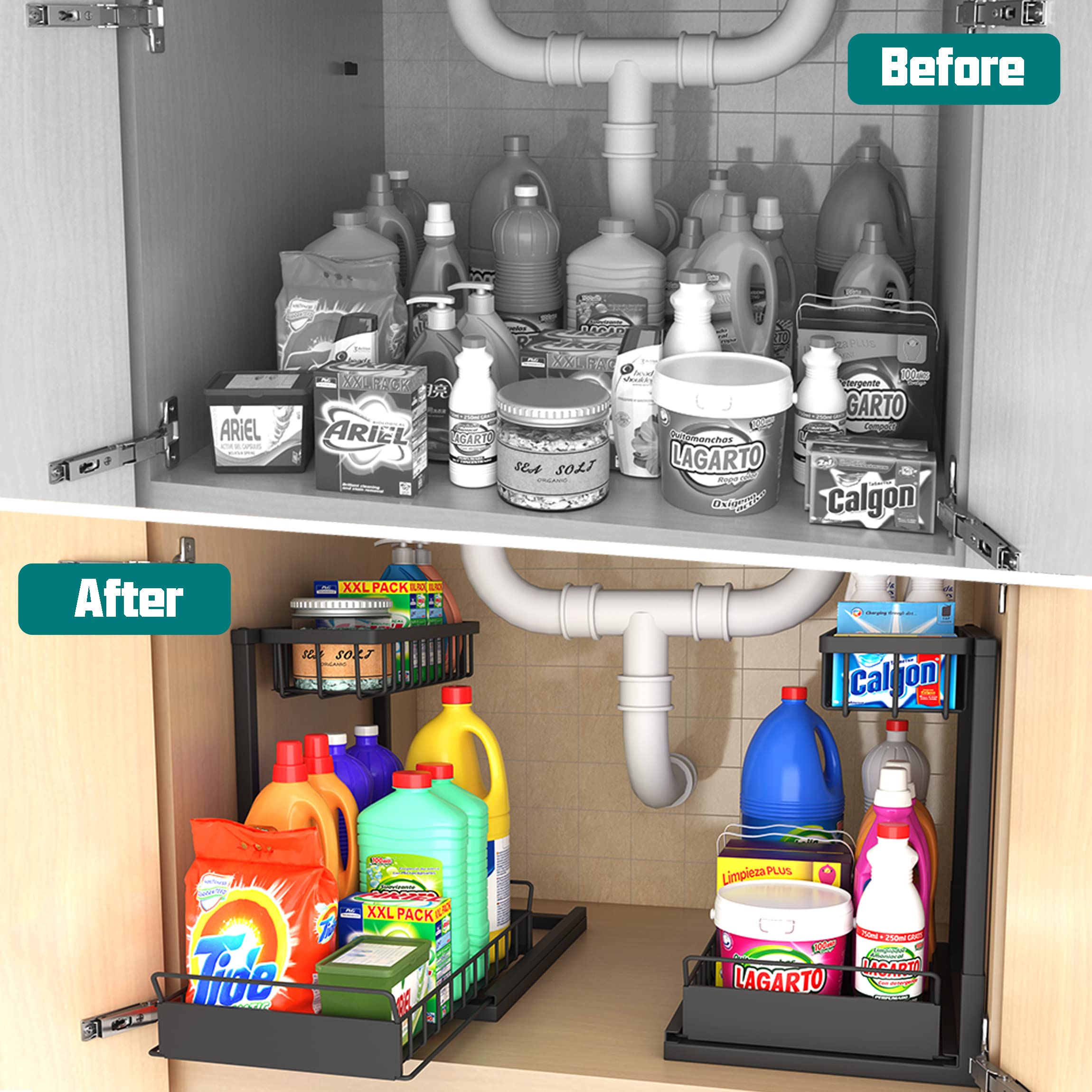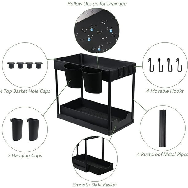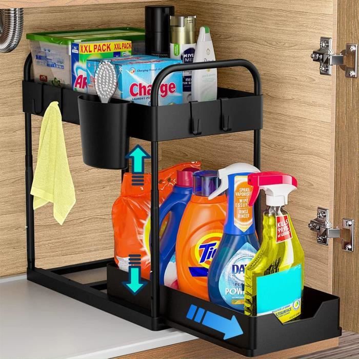 Agrandit jusqu'à 24,6 cm , Poignée unique., Séparateur anti-basculement Robinet de cuisine mural Robinet de cuisine Robinet d'évier pivotant... Lot de 2 : 8 crochets amovibles, 4 séparateurs, 4 tasses suspendues., Couleurs : blanc Lot De 2 Organiseurs Empilables à 2 Niveaux Sous évier Avec Tiroir De Maximisez votre espace de rangement : les organiseurs à 2 niveaux sous évier stockent et organisent vos fournitures de nettoyage, lotions ou vos outils capillaires, idéal pour la cuisine, l'évier de salle de bain, la buanderie. Organisateur d'armoire à 2 Niveaux sous évier,avec tiroir de Rangement... Organiseur sous évier à 2 niveaux coulissants sous l'armoire Design élégant : un tiroir inférieur coulissant vous permet d'accéder plus facilement aux articles cachés à l'arrière ; paniers à 2 niveaux avec design creux pour un bon drainage, pas d'accumulation d'eau. Matériau des tapis antidérapants : polypropylène et acier inoxydable.