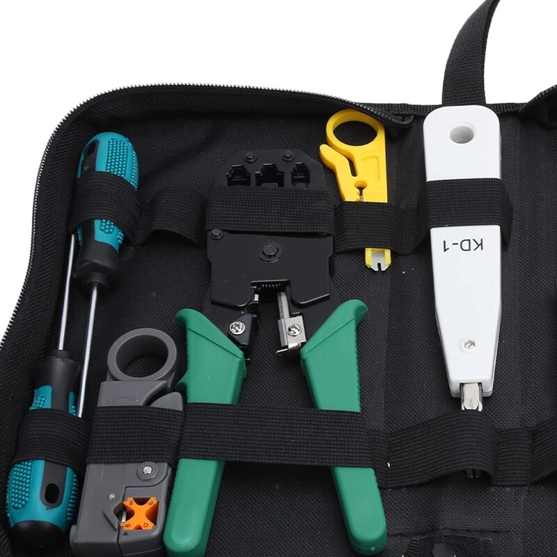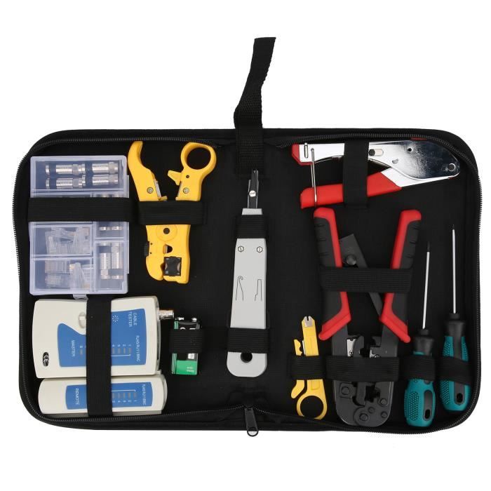 Kit d'outils à sertir professionnel RJ45 avec étui robuste de transport : ce kit d'outils réseau professionnel est transporté avec un étui de qualité supérieure, léger et robuste, tous ces outils peuvent être bien placés dans cette coque ; étui portable et pratique pour transporter partout : nous pouvons l'utiliser à la maison, au bureau, dans l'ingénierie, la salle des machines, le câblage réseau Le kit d'outils pour réseau à 4 unités d'Intellinet permet aux installateurs professionnels ou aux amateurs d'informatique de gérer le câblage, la terminaison et le dépannage d'un réseau professionnel ou domestique d'une manière relativement simple Parfait pour les câbles Cat5, Cat5e, Cat6, Cat6A., Facile à utiliser Kit D'outils Réseau, Pince à Sertir RJ45 Avec 20 Connecteurs RJ45 Cat7 Outil de poinçonnage 110/88 : prise en main confortable et facile à manipuler, lames précises interchangeables et réversibles entre les normes 110 et 88., Insère et coupe les terminaisons en une seule opération simple pour câble réseau Cat6a/Cat6/Cat5e/Cat5 Achetez LEATBUY Kit d'outils à sertir pour RJ45/RJ11/RJ12/CAT5/CAT6/CAT5e/6P/4P/8P, Pince à sertir réseau professionnel Pince à dénuder pour entretien... Gaobige Kit d'outils réseau, RJ45, outil de sertissage, outil de Tracker de fil multifonction avec suivi de fil et fonction de test de ligne téléphonique et réseau : fonction de suivi des fils : localiser rapidement le point d'arrêt, trouver le fil sur tous les types de commutateur/routeur/terminal PC connectés. L'outil Pass Thorugh RJ45 Crimng peut couper, dénuder, sertir : cette pince à sertir RJ45 peut non seulement couper des fils, dénuder des câbles, mais peut également sertir les connecteurs RJ45 et RJ45 Regular ; rapide et fiable ; il peut également sertir des connecteurs RJ11 RJ12 6P.