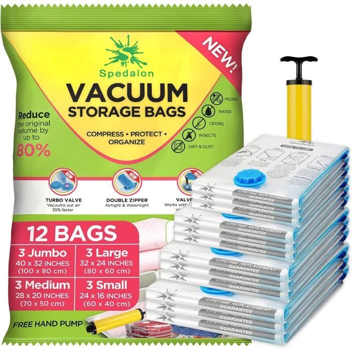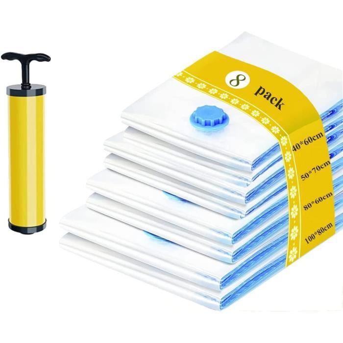Matériau réutilisable : le matériau du sac sous vide est composé d'un matériau composite PE et PA. Sac Presse Sac Sous Vide Couette 6 Sacs De Compression Réutilisables - Rangement Sous Vide Vêtements 60x40cm, Gain De Place Garanti Rangement Couettes Literie Sac Rangement Sous Vide Avec Pompe Le sac sous vide dispose d'une valve anti-fuite qui peut bien évacuer l'air sans rebond. Lot de 6 sacs sous vide. Lot de 6 sacs de rangement sous vide pour économiser de l'espace Sacs sous vide pour vêtements... Le sac sous vide portable est également adapté pour les déplacements et peut économiser plus d'espace dans les valises, les valises ou d'autres endroits Vous pouvez mettre plus de vêtements, couettes ou autres articles dans le placard, la valise ou sous le lit qu'auparavant. 6 sacs de 3 tailles différentes] Cet ensemble contient 6 sacs sous vide pour vêtements : 2 grands (80 cm x 100 cm), 2 moyens (60 cm x 80 cm), 2 petits sacs... Le sac sous vide a une bonne étanchéité à l'air et une bonne résistance à l'humidité et peut garder les textiles secs et propres pendant longtemps. Les sacs sous vide ont trois tailles, grandes, moyennes et petites pour répondre à vos besoins de rangement. Sacs De Rangement Sous Vide, Les Sacs Compressibles, Voyages Caractéristiques du produit : Le sac sous vide a un design à double bande d'étanchéité qui est étanche et est également équipé d'un clip d'étanchéité pour une utilisation facile. Économisez de l'espace : utilisez un sac sous vide pour économiser plus de 80 % d'espace. Différentes tailles et différentes capacités des sacs sous vide peuvent répondre à vos besoins de stockage Le sac sous vide transparent vous aide à trouver rapidement ce dont vous avez besoin Excellente étanchéité à l'air : le sac sous vide dispose de doubles bandes d'étanchéité et de trois valves de sécurité qui permettent de bien évacuer l'air sans reflux et de garder les textiles secs et propres pendant longtemps.
