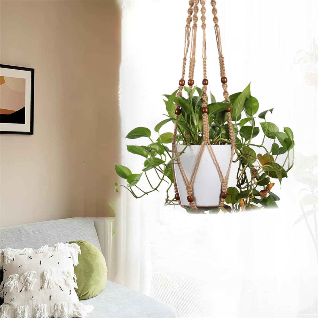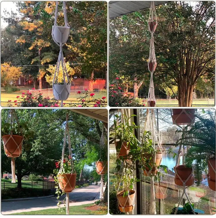Cette beauté embellira votre maison, balcon, jardin, cour, patio, plafond haut et bas ou illuminera un bureau. Il suffit d'étendre les 4 cordes de pieds, de mettre le pot de fleurs au milieu de la conjonction. Beau et facile à arroser et à entretenir. Décoration intérieure et extérieure : le crochet en jute ajoute une touche bohème à votre décoration intérieure. Parfait pour décorer les chambres et ajoutera de la splendeur à votre maison ou à votre jardin sur balcon Ce support pour plantes de jardin peut accrocher des ornements ou des plantes aériennes qui décorent votre espace intérieur, tels que des paniers de plantes, des pots de fleurs, des pots en céramique, des pots en métal, des pots en plastique, etc. Fabriqué en corde de coton durable tissé à la main, un anneau en métal utile en haut de la ficelle pour accrocher le crochet au plafond, au balcon, à la fenêtre, à une étagère en fer, etc. Ajoutez facilement une touche spéciale à votre belle décoration d'intérieur bohème, à votre jolie décoration de ferme ou à votre style minimaliste moderne. Taille des crochets de suspension : 3,5 cm de diamètre. Joli cadeau : ces cintres de fleurs sont un excellent cadeau pour les familles et les amis qui aiment les plantes pour exposer leurs plantes. Moyen simple d'afficher vos belles plantes et de donner à votre maison une décoration unique à suspendre (pots et plantes non inclus). Ces 2 suspensions macramé en corde de coton (105cm de long) supportent tes pots de fleurs pour une déco végétale suspendue ultra tendance. Couleur blanc/crème... Contenu de l'emballage : 2 supports de plantes et 2 crochets de suspension., Longueur totale : 105 cm. 2 Pièces Panier Suspendu En Macramé Pot Suspendu Pour Plantes, Support De Pot De Fleur Cintres en corde de coton de qualité supérieure : les cintres en corde macramé sont fabriqués en coton naturel, fabriqués à la main et respectueux de l'environnement. Caractéristiques : 🌷 Corde en coton. Facile à utiliser : les cintres sont adaptés pour une utilisation en intérieur et en extérieur. 🌷 Économisez de l'espace. Corde Coton Pot Suspendu Style Boho Blanc/crème