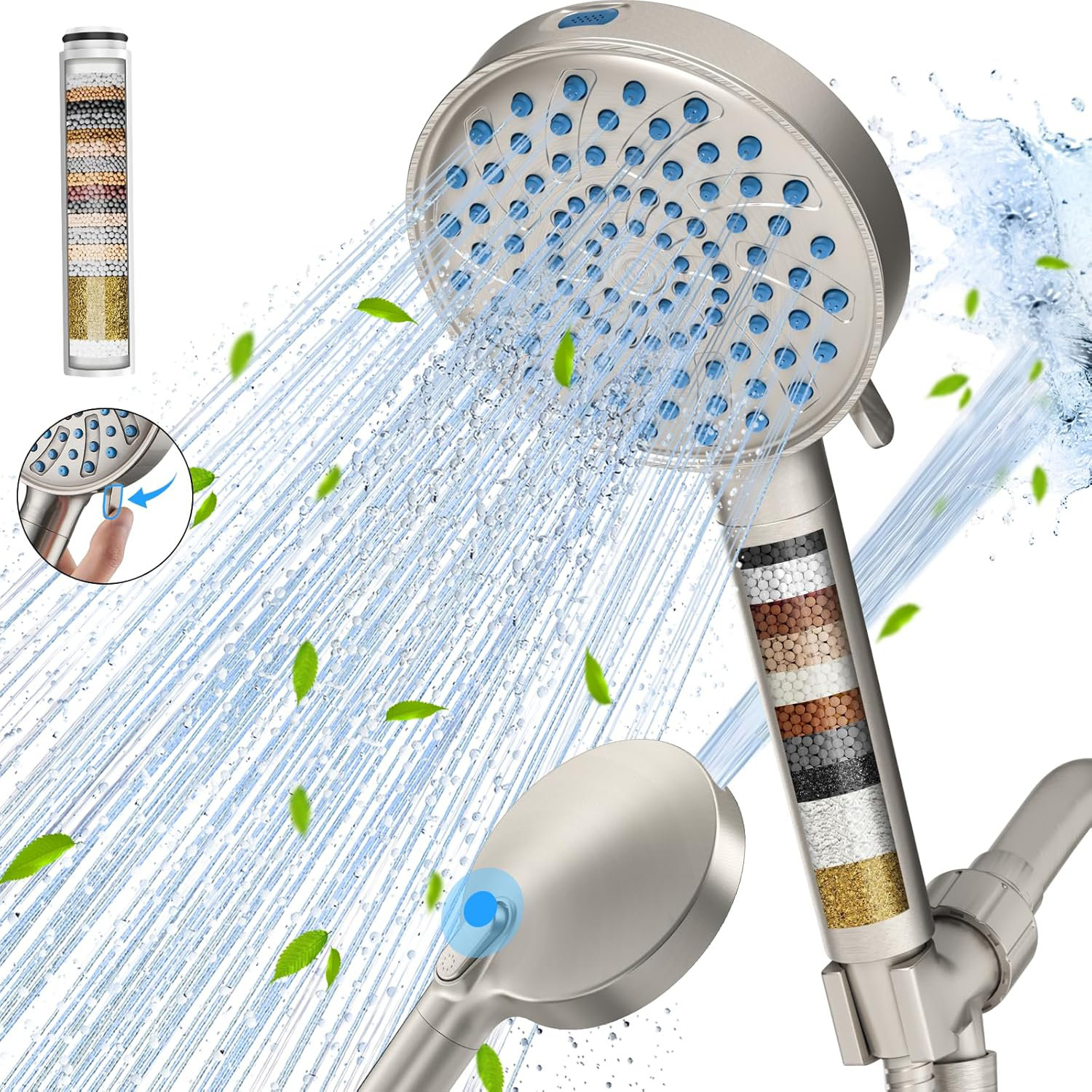 Ses 90 jets en caoutchouc autonettoyants éliminent sans effort l'accumulation de calcaire, garantissant un débit d'eau constant et puissant pendant des années. Ensemble de pommeau de douche filtré de luxe, filtre de douche à 20 La plaque frontale de 15,2 cm de large assure un débit d'eau à haute pression uniformément réparti pour une douche rajeunissante sans sacrifier l'efficacité de l'eau. Pommeau De Douche Anti Calcaire Pomme De Douche Filtrée, Pommeau De Douche Rotatif À 360°, Haute Pommeau De Douche Filtrant Efficace En les filtrant, il offre une routine de bain plus saine et laisse votre peau douce. Son pommeau de douche Iopsk Filtered Combo, fabriqué en ABS de haute qualité et chromé, est non seulement élégant et moderne, mais est également très durable. Le chlore et les chloramines peuvent nuire à la peau et aux cheveux, et les métaux lourds posent des risques potentiels à long terme pour la santé. Avec du charbon actif de qualité supérieure, de la vitamine C et des billes minérales/céramiques, il peut enlever jusqu'à deux fois plus de métaux lourds, de chlore et de chloramines de l'eau du robinet que les pommeaux de douche ordinaires. En bref, le système de douche Health Care combine luxe, avantages pour la santé, haute performance, durabilité et facilité d'installation, ce qui en fait un choix irrésistible pour améliorer votre expérience de douche., » Design durable et facile à nettoyer : notre pommeau de douche chromé de luxe, construit en plastique ABS résistant à la rouille, dispose de 90 jets en caoutchouc autonettoyants. Il est parfait pour soulager le stress ou commencer votre journée énergique, car il masse votre corps et soulage les tensions musculaires. Installation simple : installation facile et facile. Technologie de filtration supérieure : profitez d'une pureté de niveau supérieur avec notre pommeau de douche doté d'une technologie de filtration avancée. Élimine sans effort l'accumulation de calcaire, assurant un débit d'eau constant et puissant pour les années à venir. Pommeau de douche à haute pression Pommeau de douche à filtre pour eau... Le pommeau de douche en acier inoxydable et ABS antirouille s'adapte à n'importe quel tuyau standard de 1,2 cm en quelques minutes sans outils. Système de douche pour soins de santé : le pommeau de douche filtré Iopsk est fabriqué en ABS de haute qualité et plaqué chrome, assurant durabilité et un look élégant et moderne. Pression d'eau maximale : profitez de l'expérience ultime de la douche. Faible entretien pour un luxe durable.