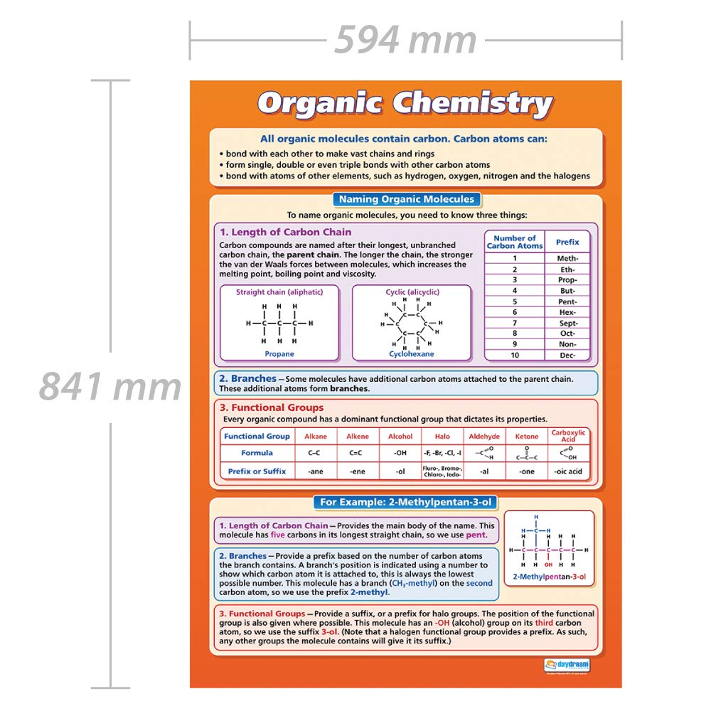 On aborde ici les bases de la liaison chimique : formule de Lewis, hybridation, formule topologique, électronégativité et polarité. On regardera aussi comment les liaisons et les forces intermoléculaires influencent les propriétés physiques comme le point d'ébullition Un superbe illustrée et colorée carte murale contenant le texte en attirant images. Couvrant la nature des molécules organiques et la façon dont elles sont nommées, cette affiche scolaire unique peut jouer un rôle vital dans l'amélioration de la compréhension des élèves et la décoration de la salle de classe. Planches/posters Scientifiques Scolaires - Neuf Pyramide Alimentaire | Affiches Scientifiques | Papier Laminé Brillant Mesurant 850mm X 594mm (A1) | Graphiques Sciences Pour La Classe | Tableaux éducatifs Par Daydream Education Nos superbes affiches murales peuvent aider les élèves à développer l'intérêt de la science, tout en reprenant toutes les informations essentielles qu'ils ont été enseignées. 1 Fournisseur : fourni par Daydream Education, le fournisseur leader des affiches éducatives pour les écoles, avec une gamme qui couvre plus de 25 sujets sur les étapes clés 1 à 5., En combinant une approche visuelle audacieuse et des informations simples, nous avons fourni plus de cinq millions de ressources à plus de 50 000 salles de classe dans le monde entier. Nos affiches éducatives sont une façon fantastique d'égayer et de décorer n'importe quelle salle de classe et peuvent facilement compléter tout type d'environnement d'apprentissage. Le tableau mural est une excellente ressource pour les écoles, les salles de classe, les professeurs de science, les étudiants, les tuteurs, les parents à l'école à domicile et les enfants à l'école. Cette affiche scientifique est spécialement conçue pour aider les élèves à mieux comprendre la nature des molécules organiques et leur nom. La chimie organique est une branche de la chimie concernant la description et l'étude d'une grande classe de molécules à base de carbone : les composés organiques. Bien qu'il y ait un recouvrement avec la biochimie, cette dernière s'intéresse spécifiquement aux molécules fabriquées par les organismes vivants. La matière organique ainsi que les composés organiques sont au cœur de... Tableau éducatif conçu par des enseignants : notre affiche de chimie biologique aide les étudiants à apprendre, s'engager et se souvenir de plus d'informations que jamais.