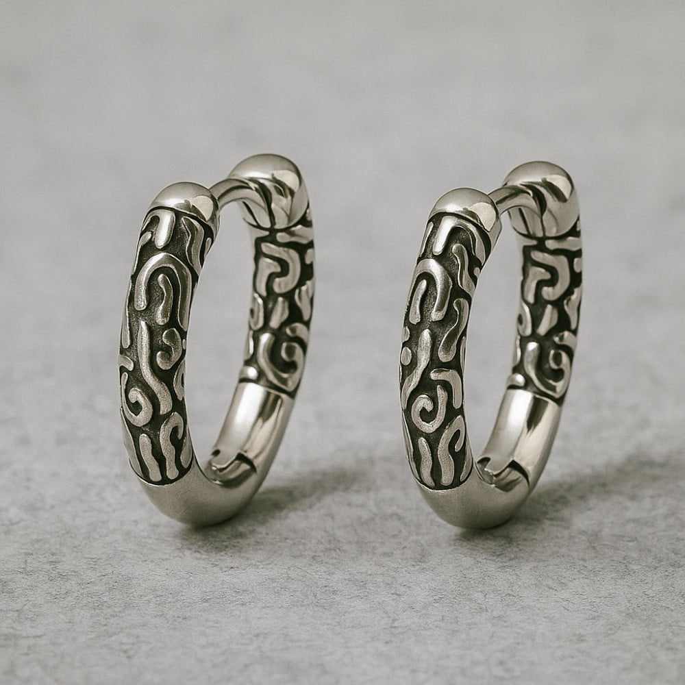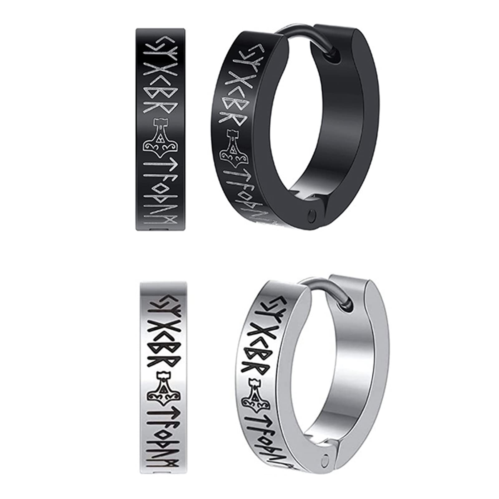 Couleur : argent ou noir Diamètre intérieur : 9 mm - extérieur : 13 mm Largeur des boucles d'oreilles : 4 mm Bague Viking Runes Celtes Design classique] Les runes vikings ont des significations magiques, et les Vikings croyaient qu'elles pouvaient apporter le bonheur, la joie... DESIGN - Créoles En Acier Inoxydable Résistant à L'eau Avec Motif Vague Grecque - Doré Boucles D-oreille Viking Vintage En Acier Inoxydable Pour