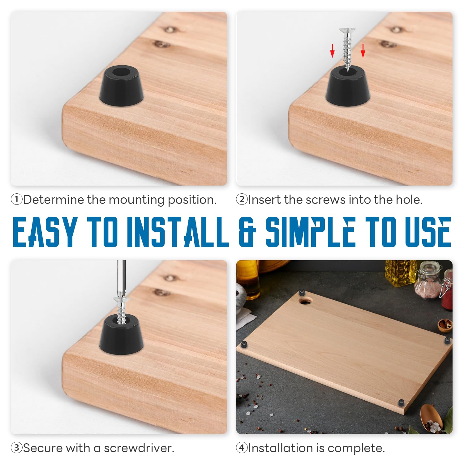 Les pieds en caoutchouc pour meubles sont livrés dans une boîte en plastique transparent. 20 Pieds En Caoutchouc Pour Les Planches à Découper Et 20 Vis Les pieds en caoutchouc pour meubles sont livrés dans une boîte en plastique transparent, aile Ce qui est soigné et Pratique pour le rangement. Matériaux : acier inoxydable et caoutchouc., Couleur : noir. Lot de 20 Patins de Meubles en Caoutchouc pour chaises Audio, Planche à Pare-chocs en caoutchouc avec anneau en acier inoxydable intégré, leur durée de vie est augmentée Contenu : 20 pieds de planche à découper en caoutchouc. Le matériau dur mais élastique offre une excellente adhérence et une protection pour les plans de travail, tout en prévenant les rayures et le bruit. Convient à diverses applications, telles que les porte-couteaux, le bas des haut-parleurs et les pieds de tabouret. Assurez-vous que les pieds sont fermement installés pour éviter le... Matériaux de haute qualité : les patins antidérapants pour meubles sont fabriqués à partir de caoutchouc et de PVC de qualité supérieure, offrant une excellente résistance à l'usure, une prévention du glissement et une durabilité. Caractéristiques : ensemble économique : notre ensemble comprend 20 pieds en caoutchouc et 20 vis d'installation. Les pieds de planche à découper réduisent également le bruit de friction, offrant un environnement de vie plus confortable Chaque pied en caoutchouc pour planche à découper a une largeur supérieure de 1,6 cm, une largeur inférieure de 2 cm et une hauteur de 1,3 cm, pour répondre aux besoins d'utilisation à long terme. Les pieds de planche à découper réduisent également le bruit de friction, offrant un environnement de vie plus confortable. Un simple tournevis est tout ce dont vous avez besoin pour une installation rapide. Dimensions : chaque pied de planche à découper en caoutchouc mesure 2 x 1,6 x 1,3 cm Excellent rapport qualité/prix : notre lot comprend 20 pieds en caoutchouc et 20 vis d'installation.