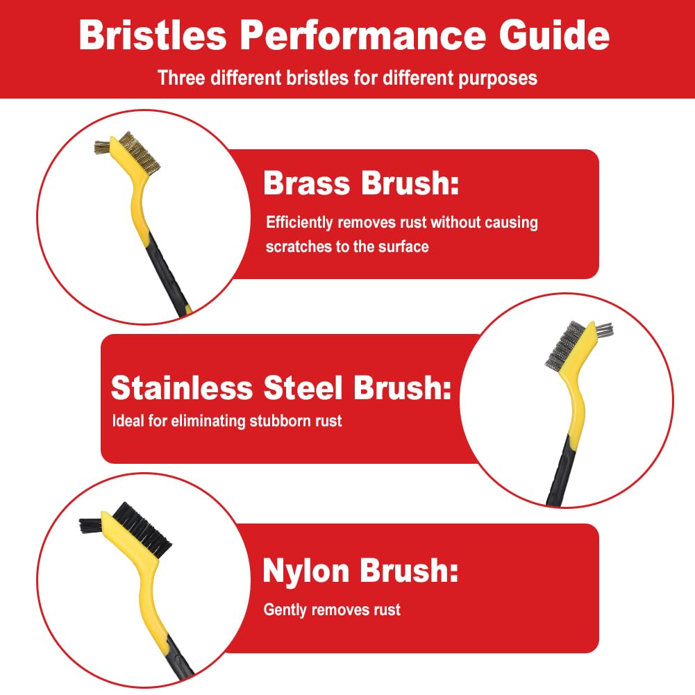 Il convient de noter que vous devez tenir fermement le manche lorsque vous utilisez la tête de la brosse afin d'éviter que le fil métallique ne vous blesse les doigts lors du nettoyage. Il aide à éliminer les scories de soudure, la rouille, les taches de peinture et à nettoyer les pièces en acier, les machines et les pièces métalliques non finies Livré chez vous au meilleur prix : Lot de 6 brosses métalliques, 3 brosses métalliques, petite poignée en bois, 3 grandes brosses à main, en acier inoxydable, p 🪥[Ensemble pratique] Vous recevrez 2 brosses métalliques(Une grande et une petite), 3 brosses brosses en laiton(Deux grandes et une petite) et 1 petit brosse en nylon. 🪥[Large gamme d'applications] Les ensembles de brosses métalliques peuvent être utilisés pour nettoyer des zones nécessitant un frottement intensif pour éliminer les taches de peinture, la rouille, le laitier de soudure, le calcaire et bien d'autres choses encore. 🪥[Conception ergonomique] Nos brosses métalliques a main sont conçues de manière ergonomique pour une prise en main confortable et pratique, et ne se fatiguent pas facilement, même après une utilisation prolongée. La mini-brosse métallique est compacte et portable, et se glisse facilement dans une boîte à outils ou un sac à main. Si vous avez des questions, n'hésitez pas à nous contacter et nous serons heureux de vous aider. Le manche de la brosse métallique est concave des deux côtés, et le manche incurvé est conçu pour vous donner une prise légère et forte pour un nettoyage plus efficace. Elles sont également idéales pour éliminer la corrosion et d'autres éléments sur les pièces, les équipements, les machines et d'autres surfaces. Brosse Metal 6 Pcs Brosses Métalliques 3 Grandes + 3 Petites , Brosses E 3 Grandes 3 Petites Brosses En Acier Inoxydable Et Laiton Et Nylon Brosses A Main Ergonomiques Fer A Onduler Large gamme d'applications] Les ensembles de brosses métalliques peuvent être utilisés pour nettoyer des zones nécessitant un frottement intensif pour éliminer les taches de peinture, la rouille, le laitier de soudure, le calcaire et bien d'autres choses encore. Lot de 6 Brosses Métalliques en Acier Inoxydable, Laiton... Lot de 6 brosses métalliques, 3 brosses métalliques, petite