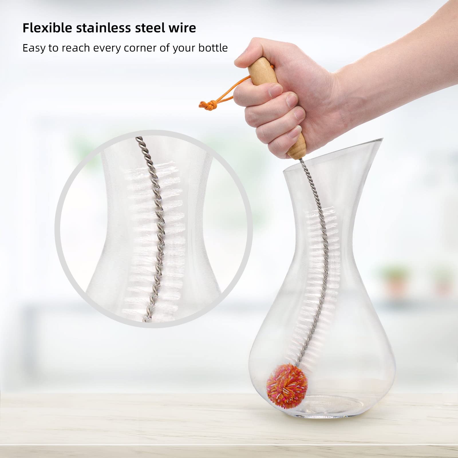 【ADAPTÉ PARFAIT POUR LES BOUTEILLES EN VERRE SODASTREAM】: La brosse à bouteille LEBEXY pour bouteilles en verre est spécialement conçue pour la forme des bouteilles en verre Soda Stream, ce qui rend le processus de nettoyage plus efficace et plus pratique. Il y a aussi une petite brosse pour bouteilles de soda, biberons, bouteilles d'eau, bouteilles d'eau de sport, verres à vin, bouteilles de cocktail, etc. 【Dissout la saleté sèche dure】: les poils naturels éliminent intensément et facilement même les dépôts tenaces. Il y a aussi une petite brosse pour les bouteilles de soda, les biberons, les gourdes, les gourdes de sport, les verres à vin, les bouteilles de cocktail, etc. Rapide & efficace : avec la brosse de nettoyage Lebexy vous pouvez nettoyer vos bouteilles en verre jusqu'à 10 fois plus vite Élimine facilement les dépôts sans rayures. 2 goupillons. Fil de coton doux. La forme unique de la brosse facilite le nettoyage des taches tenaces... Goupillon Gourde LEBEXY Lot De 2 Goupillons Pour Bouteilles En Verre SodaStream Sodastream Bouteille Le corps de la brosse au design unique s'adapte à la forme de la bouteille en verre et permet également un nettoyage jusque dans les coins les plus reculés. Goupillon pour bouteilles Basilico | Vitrine Magique 【CHNELL & EFFICACITÉ】: avec la brosse de nettoyage LEBEXY vous pouvez nettoyer vos bouteilles en verre jusqu'à 10 fois plus rapidement ! 【LARGE APPLICATION】: Ce kit de brosses de nettoyage est disponible en 2 tailles différentes (1 pièce 35 x 9 cm, 1 pièce 34 x 3,5 cm). Grâce à son ajustement parfait, votre bouteille en verre brillera comme jamais auparavant