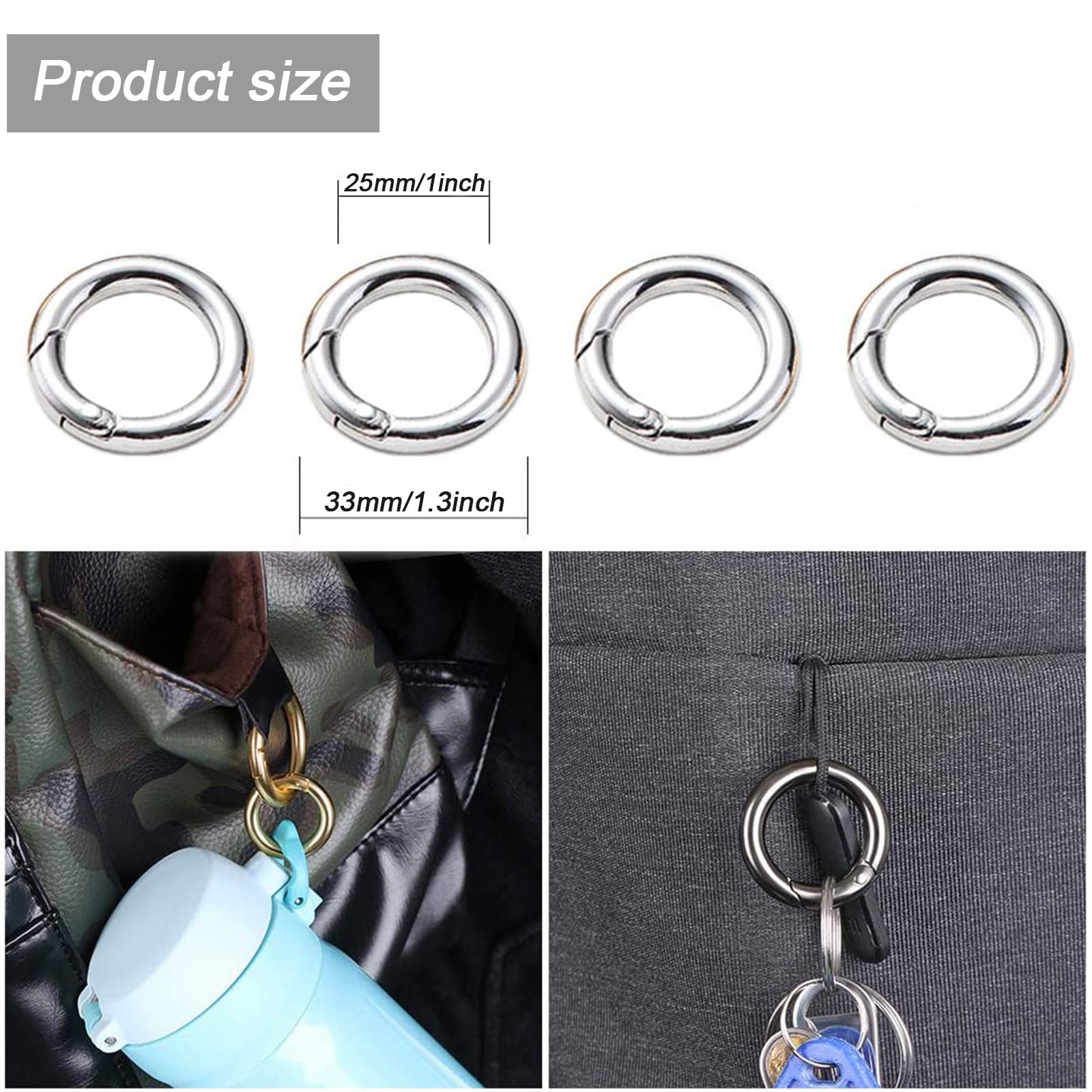 Dimensions du produit : 3,4 cm/1,3 pouces de diamètre extérieurDiamètre intérieur 2,5 cm/0,1 poucesListe d'emballage de livraison du produit: 10 Pièces anneaux brisés de couleur pistolet 【Correspondance Créative】 Ces clips ronds peuvent décorer et remplacer la plupart des articles, tels que des porte-clés, des colliers pour animaux de compagnie, des boucles de bijoux, des anneaux de portefeuille, des sacs à main, des sacs à bandoulière, des écharpes, des sangles de sport, des clips de porte-clés et des porte-clés en paracorde d'extérieur. Anneau De Porte-cles 10 Mousquetons Ronds Dorés 33mm Vous n'avez besoin que d'une main pour utiliser deux anneaux fendus de manière très pratique sans consommer trop d'énergie et de temps.Vous recevrez 10 mousquetons en acier inoxydable Mini S pour vos besoins quotidiens 【Facile à Utiliser】 Conception de clip de boucle de porte-clés, simple et pratique à utiliser, facile à ouvrir et à fermer, il peut non seulement être utilisé pour étendre votre sac à main ou comme boucle alternative pour les bretelles, mais peut également être utilisé comme un accessoire pour d'autres projets de réparation., Mousqueton clip petit Mini Mousqueton Mini Carabiner Clip Spring,Mousqueton Rond Printemps Snap Clips Porte-clés Crochet, 5pcs Joint Torique En Alliage De Zinc Rond Mousquetons Anneaux Crochet Verrouillage Porte-clés Boucle Sac à Main Por Porte Clé Mousqueton 【Porte-Clés à Anneau Fendu】 Vous recevrez 10 pièces de mousquetons ronds, des couleurs simples peuvent répondre à vos besoins quotidiens de bricolage et d'assortiment de vêtements. 【Fabrication Exquise】 Le clip porte-clés est fabriqué en alliage de zinc de haute qualité, léger et robuste, avec une surface lisse et une conception de bord qui ne rayera pas votre peau et vos objets. Mousqueton porte-clés clip en métal 18 Pièces Mousqueton Rond 6 Tailles Différentes Anneaux Porte clé Fabriqué en Alliage de Zinc Petit Mousqueton Pince à Ressort S'applique à Porte-clés...