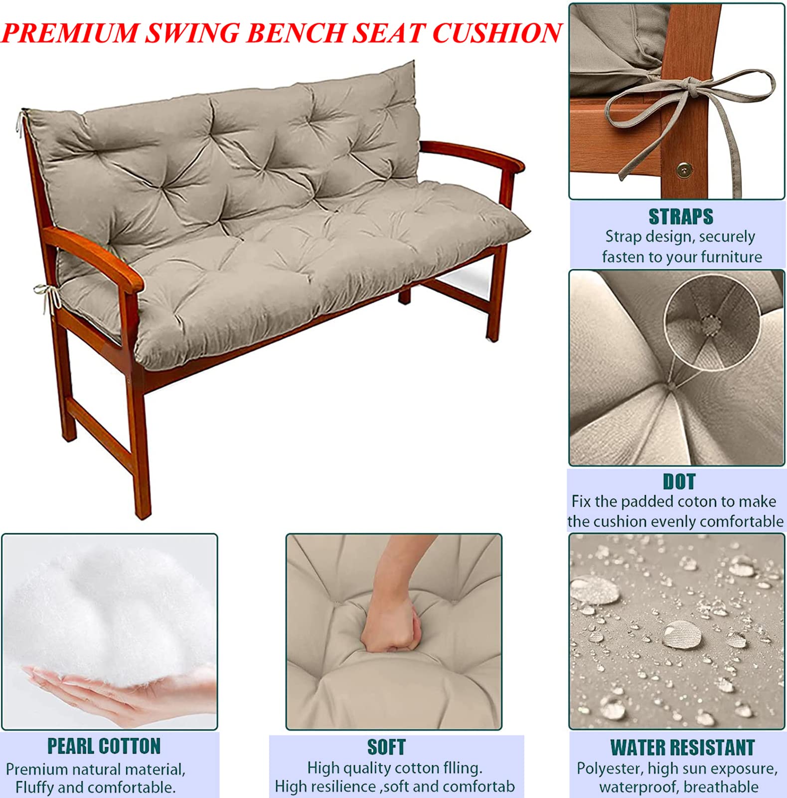 Le coussin est rempli d'éponge, avec une douceur et une dureté modérées. Disponible en trois épaisseurs différentes : 3 cm/5 cm/8 cm. Coussin Pour Banc Coussin De Banc Long Et épais Imperméable 2, 3 Ou 4 Places Coussin Sur Mesure Pour Banquette Dessous antidérapant, fixation par sangle, ruban adhésif, boucle élastique. Caractéristiques : - Les coussins protègent vos meubles de l'usure, de la saleté, des taches et de la décoloration causées par une exposition prolongée au soleil. Coussin personnalisé : la plupart des tailles et formes peuvent être personnalisées via le canal Customize Now, par exemple Par exemple : rectangle/trapèze, etc. Dimensions : longueur : jusqu'à 400 cm ; largeur : jusqu'à 75 cm., Épaisseur : 3/5/8 cm. Le design antidérapant empêche le coussin de siège de glisser facilement. Tissu de qualité supérieure : vous voulez ajouter un peu de confort à votre terrasse ou balcon ? Nos housses de coussin de jardin d'extérieur sont fabriquées en tissu polyester, qui est durable et peut résister aux éclaboussures d'eau de pluie. Nous fabriquons des coussins pour l'extérieur qui sauront s'adapter à tous vos besoins ! Ces coussins de banc sont épais et confortables pour vous aider, vous et vos invités, à vous détendre et à soulager la pression sur les hanches et les jambes. Ce luxueux coussin de banc imperméable est fabriqué en cuir PVC de haute qualité, conçu spécifiquement pour les bancs 2/3 places, avec une épaisseur de 5 cm... Petits conseils : En raison des différences de lumière ou d'écrans d'ordinateur, il peut y avoir une légère différence de couleur entre les photos du produit. Contenu : 1 coussin de banc. Le coussin de siège peut être personnalisé en taille, avec une longueur maximale de 400 cm et une largeur maximale de 75 cm. - Le coussin a une fermeture éclair, ce qui facilite le retrait du rembourrage en éponge et le nettoyage de la housse de coussin. Coussin Imperméable Pour Chien Et Chat Lit Confortable Avec Fermeture