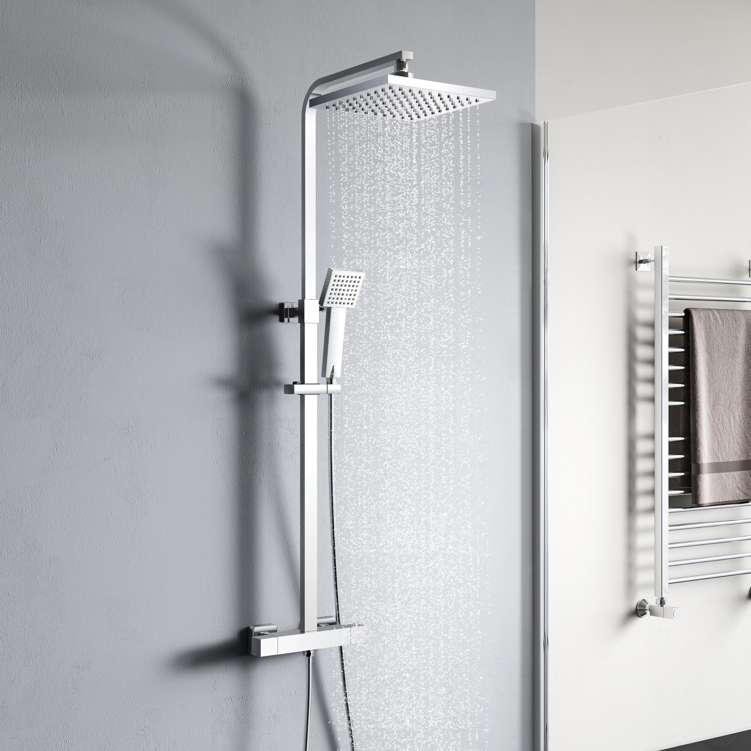Colonne de douche sans mitigeur,kit complet de douche à effet pluie,pommeau de douche de 25.4x 25.4cm et douchette, barre de douche,chromé | Leroy Merlin Kit De Douche Thermostatique – Chromé – Pommeau Cascade – Kit Douchette Sur Rampe – 3 Fonctions - Como Flexible et confortable : la hauteur de la douche à effet pluie avec robinet peut être réglée entre 800 et 1200 mm, ce qui convient aux personnes de différentes tailles ; pommeau de douche à effet pluie avec 3 types de jet, pommeau de douche à effet pluie, tuyau et support et répond à différents besoins de douche. Les raccords standardisés garantissent un montage facile et rapide du système de douche dans la douche ou la baignoire. Il suffit de le connecter à la tuyauterie existante pour le robinet de douche ou le robinet de baignoire. Température constante à 38 ° : le thermostat de douche est toujours maintenu à 38 °. Flexible et confortable : la hauteur du kit de douche à effet pluie peut être réglée entre 750 et 1200 mm, ce qui convient aux personnes de différentes tailles ; le tuyau de douche et le support et la tête de douche à effet pluie répondent à différents besoins de douche Facile à nettoyer La surface du pommeau de douche est lisse et brillante, facile à nettoyer et plus durable. Température constante de 38 °C Système De Douche Avec Thermostat, Douchette Carrée Avec Robinet Mélangeur, Robinet De Pluie... Si vous avez des questions, n'hésitez pas à nous contacter via l'adresse e-mail officielle d'YOOZENA ou Amazon. Tube en acier inoxydable réglable en hauteur Le calcaire se nettoie facilement des buses en silicone sur le pommeau de douche. La douche de tête peut pivoter librement à 360 °, une couverture large et uniforme et une douche plus agréable. Commutation à un bouton, simple et pratique Douche facile : le système de douche avec thermostat fournit un flux d'eau luxueux qui enveloppe tout le corps. La température d'écoulement du système de douche avec thermostat est toujours maintenue à 38 ° agréable. Douchette flexible Douchette à main, utilisez plus flexible et confortable pour répondre aux besoins de bain de toute la famille. Appuyez simplement sur le bouton pour vous déplacer vers le haut et vers le bas. Laissez les gouttes d'eau douces et riches éliminer la fatigue et les soucis de la journée Système de douche YOOZENA Conception à température constante, la poursuite d'une vie de haute qualité Barre télescopique réglable en hauteur d'environ 800-1200 mm - Pommeau de douche rond en plastique réglable en inclinaison et hauteur - Picots anti-calcaire pour un nettoyage rapide et facile. En tournant simplement le bouton, vous pouvez basculer en continu entre les deux types de jet. 2 choix différents : cette colonne de douche est livrée avec un pommeau de douche et une douchette. Vous pouvez en profiter pendant l'hiver froid. Vous pouvez profiter d'une douche agréable en hiver froid. La surface brillante et facile d'entretien convainc par sa qualité durable. Vous n'avez pas besoin de régler la température de l'eau à plusieurs reprises et d'éviter l'inconfort et les risques de sécurité causés par la chaleur et le froid fluctuants. Douche à effet pluie 120 buses en silicone sont uniformément réparties et distribuées de manière hermétique, assurent un débit d'eau plus uniforme et un contact avec la peau, de sorte que vous pouvez profiter d'un bain lisse. Robinet en laiton Le robinet en laiton empêche efficacement la reproduction des bactéries et assure le nettoyage de la qualité de l'eau.