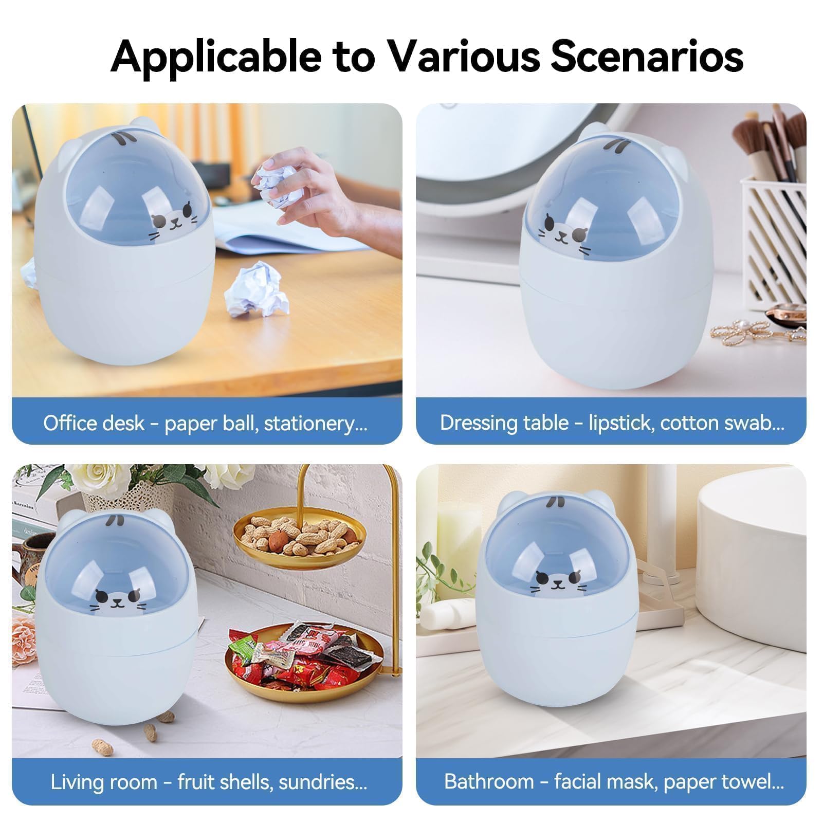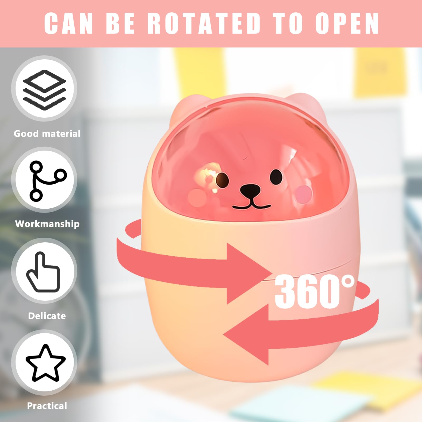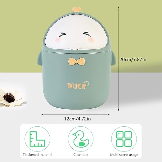 Mini poubelle de bureau avec couvercle - Jolie poubelle de comptoir - Petite poubelle pour bureau, voiture, bureau, cuisine - Elle est petite et compacte, ne prend pas de place. Et il est pratique lorsque vous avez besoin de jeter des ordures pendant le voyage. Petit panier à papier avec couvercle en forme d'ours de dessin animé Êtes-vous toujours inquiet de ne pas avoir de mini poubelle appropriée ? Ne vous inquiétez pas, ce produit est en plastique et convient à la jolie mini poubelle en forme d'ours en peluche sur le bureau. ●Dimensions de l'emballage : 13 x 13 x 10 cm / 5,11 x 5,11 x 3,93 pouces ● Poids de l'emballage : 115 g., Conseils : 1., En raison des différences d'éclairage et d'affichage, il peut y avoir des différences de couleur, ce qui est normal. Poubelle de table avec couvercle, petite poubelle de table verte, petite poubell Mini Poubelle Mignon, 16,5x12cm Mignon Petit Ours Flip Poubelle, Mini Spécification : ce produit est une adorable petite poubelle en forme d'ours avec des dimensions de 16,5 x 12 cm et un poids de 120 g. Plusieurs scénarios : la mini table couverte avec poubelle peut être utilisée pour les bureaux de bureau, les salons, les bureaux, les coiffeuses, les tables de chevet de chambre, les salles de bains, etc. Multifonction : mini poubelle de bureau qui peut être utilisée pour jeter les mouchoirs, les restes de nourriture, le marc de café, etc. Elle ne se déforme pas facilement après une utilisation prolongée. Matériau : cette mini poubelle de bureau est fabriquée en polypropylène robuste et durable, avec des bords circulaires et sans pièces tranchantes. Trop mignon pour jeter quoi que ce soit ! Cette mini-poubelle en PP (15.5x11cm) avec couvercle amovible égayera votre bureau ou salle de bain. Design ours... ●Dimensions du produit : 16,5 x 12 cm Poids du produit : 120 g.