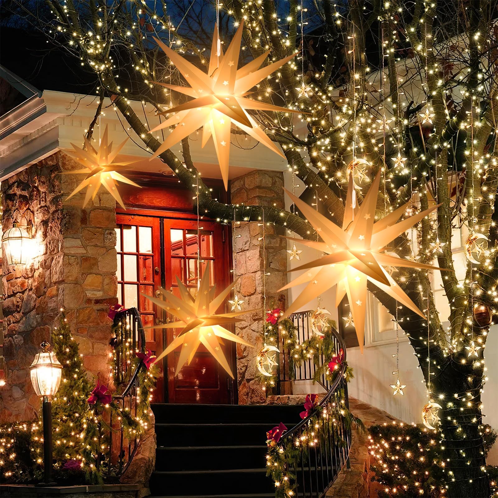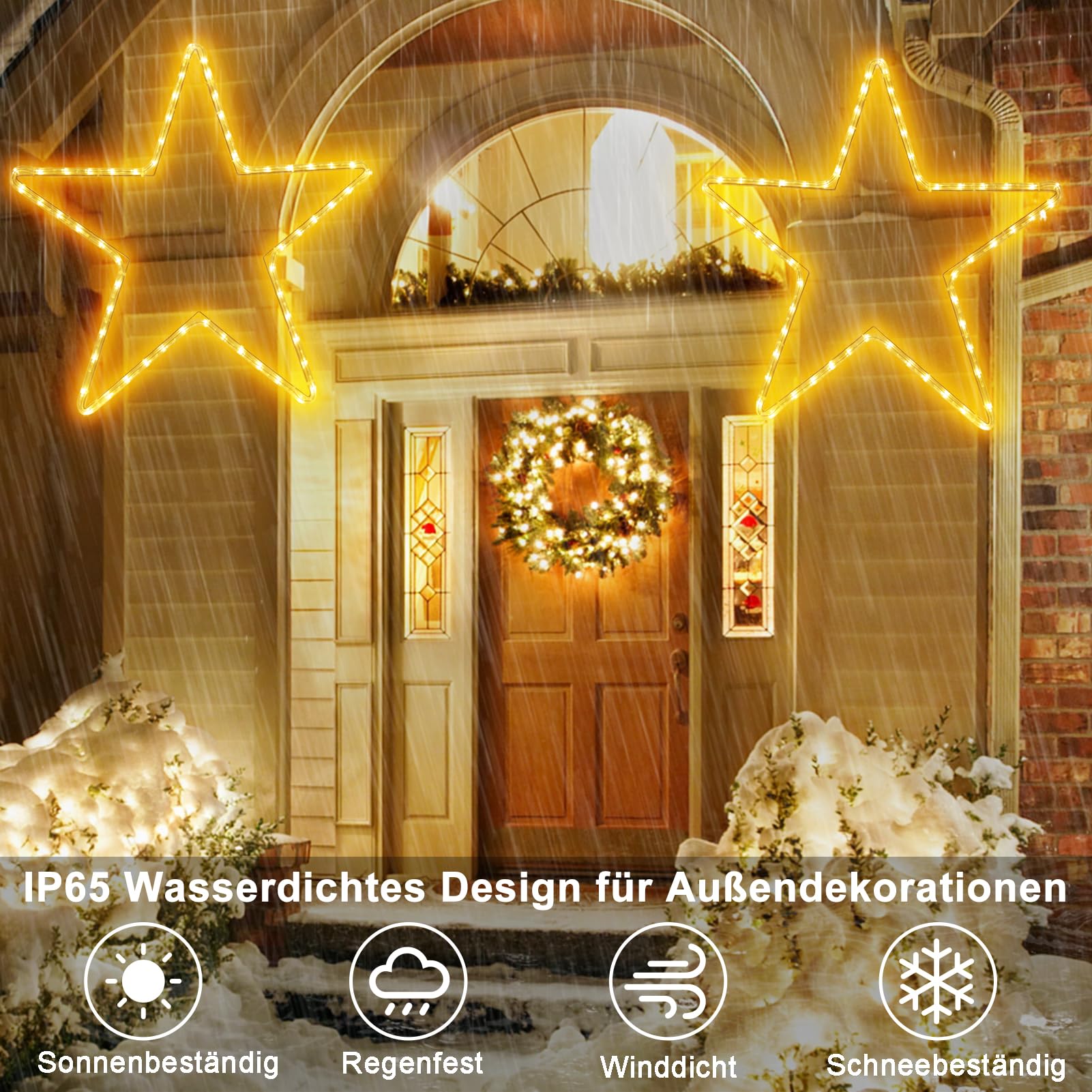 Aucun montage n'est nécessaire, il suffit de brancher et de profiter d'un bel éclairage Fonction minuterie pratique : équipé d'un bouton de minuterie sur la prise. Nombreuses utilisations possibles : Parfait pour les fêtes de Noël, peut également être utilisé pour le jardin, la cour, l'arbre, la maison, la décoration intérieure et extérieure pour créer une atmosphère festive pour Noël, le Nouvel An et le Nouvel An. Appuyez sur le bouton jusqu'à ce que la lumière verte s'allume. Largement répandu : cette lampe est conçue avec des motifs de Noël délicats, parfaite pour les fêtes de Noël, peut également être utilisée pour les décorations de jardin, de cour, d'arbre, de maison, d'intérieur et d'extérieur pour créer une atmosphère festive pour Noël, le Nouvel An, les fêtes d'anniversaire, les fêtes de famille, etc Contenu : 1 éclairage de Noël en forme d'étoile pour l'extérieur Étoile de noël décorative à suspendre 38 cm noir avec 500 led blanc... Caractéristiques : Marque : DBFAIRY Nombre de LED : 40 Longueur du câble de raccordement : 5 m. Design étoile blanc chaud : créez une atmosphère chaleureuse et accueillante avec les 40 LED en forme d'étoile à cinq branches. Imperméable et durable : guirlande lumineuse en PVC enroulée autour d'un cadre métallique stable, les lampes LED sont enfermées dans le tube, ce qui garantit durabilité et résistance aux intempéries. Qedertek Fenêtre Décorative de Noël avec Étoile, 10 LED Rideau Luineux N'oubliez pas de garder la prise au sec Decoration De Noel Exterieur ECD Germany Étoile Lumineuse LED 50cm Avec 1440 Diodes Blanc Chaud Et Minuterie, Intérieur/Extérieur, IP44 Étanche, Décoration Guirlande Brillante De Noël En Métal Suspendue, Pour Fenêtre Décoration Noël Extérieur Cela permet d'économiser de l'énergie et assure une expérience d'éclairage sans souci Parfait pour une utilisation en intérieur et en extérieur, ils résistent à différentes conditions météorologiques. Nouvel An, fêtes d'anniversaire, fêtes de famille, etc. Guirlande Lumineuse Étoile Solaire 100Led 8 Modes D'Éclairage Jardin... Éclairage de Noël vraiment sûr à brancher pour la décoration intérieure et extérieure.