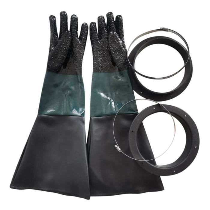 Gaqnzjx Taille : Longueur : 60 cm/23,6 Ouverture des manches : 19 cm/7,48 pouces Numéro de modèle : gants de sablageFournitures de bricolage : sanitairesCouleur : vert + noirMatériel : caoutchouc + métalContenu de l'emballage :1 paire x gants de sablage2 x porte-gants2 x tours de couSeul le contenu de l'emballage ci-dessus, autre les produits ne sont pas inclus. Cabine De Sablage Pièces De Sableuse 60 Cm Avec Joints Toriques Pour Armoire De Pistolet De Sablage les particules peuvent éviter l'usure, protéger vos mains et également vous réconforter dans votre travail., 3., Les gants et les manches de sablage sont doublés de coton., Doux et confortable. Gants de sablage 60 cm avec joints toriques pour cabine de sablage - Pièces sableuse. Description du produit. Gants et manchons de sablage Pourquoi devriez... Paire de gants caoutchouc pour cabine de sablage f0487, f0601 et f0605 54990918 Domaine d'utilisationGants de protection pour les cabines de sablage UtilisationGants de travail pour la protection des mains, en néoprène Prix par paire La taille des gants est basée sur le diamètre de l'ouverture et la longueur totale du gant de sablage. Ces gants conviennent à la plupart des cabines de sablage Ces gants s'adaptent à la plupart des cabines de sablage !, L'erreur de mesure autorisée est de +/- 1-3 cm., 1., 100 % et haute qualité., 4., Surface rugueuse pour saisir les objets confortablement.