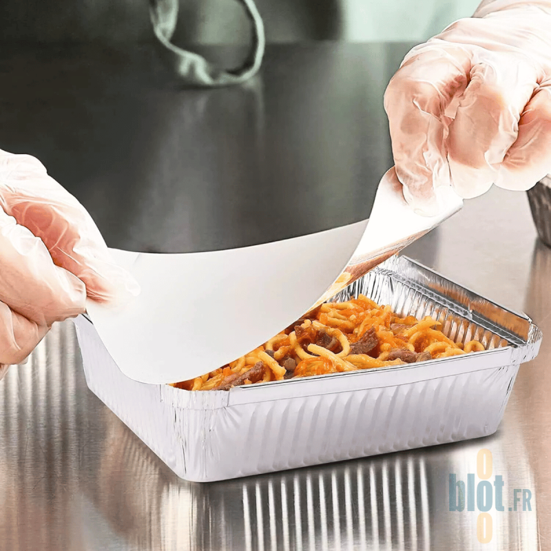 Barquette en aluminium avec couvercle en carton et revêtement aluminium Barquettes rectangulaires en aluminium sans couvercles 670 ml (1200 un... Conçue spécifiquement pour répondre aux besoins de conservation et de transport des aliments, cette barquette est idéale pour une variété d'applications culinaires. Sa taille compacte en fait également un choix pratique pour les repas individuels ou les portions à emporter. Barquette Alimentaire Jetable Opercule Pour Barquette Aluminium 890 Ml Emballage Alimentaire Tout d'abord, elle est légère, ce qui facilite son transport et sa manipulation. Vendue par paquet de 100 barquettes et 100 couvercles À partir de 0.163€ HT la pièce. Le conditionnement est de : 100 pièces. Cette Barquette Aluminium s'utilisent beaucoup en collectivité, en restauration traditionnelle, traiteur. C'est un des incontournables pour tous types de préparations. Cette Barquette Aluminium est micro-ondable Opercule en carton et aluminium | Contact Entourage Le couvercle en carton peut également être recyclé, contribuant ainsi à la préservation de l'environnement Prix de livraison : 11.88 € Délai de livraison : 1-2 jours ouvrés