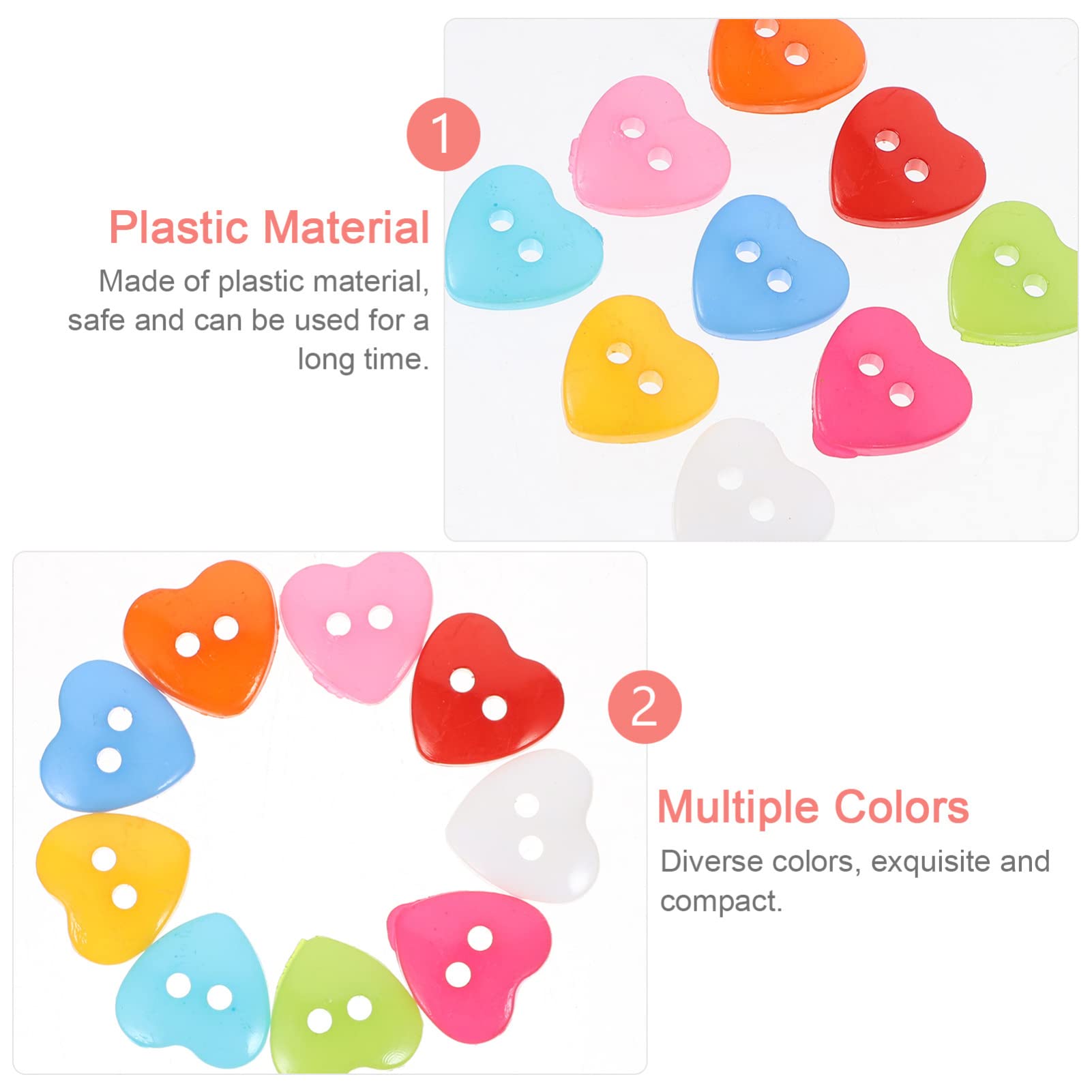 Coloré : ces boutons sont en plusieurs couleurs différentes, colorés et beaux, pour répondre à vos différents besoins Lot de 100 boutons à 2 trous en forme de cœur en résine pour couture, projets d'artisanat, décoration, accessoires de vêtements de tricot (couleur aléatoire) Lot de 240 boutons artisanaux de couleurs et de tailles mélangées pour travaux manuels et couture, 2 trous et 4 trous, avec boîte de rangement en plastique... Milisten Lot De 100 Boutons Mignons En Forme De Cœur à 2 Trous En Résine Pour Couture, Scrapbooking, Tricot, Vêtements, Accessoires De Bricolage Gros Boutons 50 Pcs Diy Gros Boutons Embellissements Pour Projets De Couture Artisanat D Coration Et Scrapbooking Motifs Et Couleurs Al Atoires Matériau : ce lot de boutons de couture est fabriqué en résine de bonne qualité, rigide, pas facile à casser, durable et résistant à l'usure