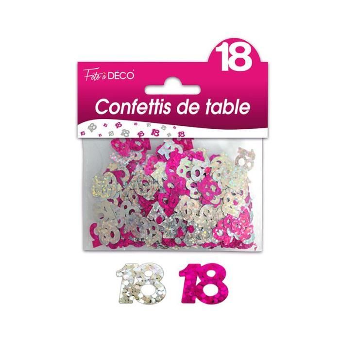 Confettis de fête pour 18e anniversaire. Folat propose une large gamme de produits de fête intéressants et tous créés conformément aux normes européennes de sécurité. Folat 'Confettis multicolores Happy Birthday//Sachet de 15 g (env. 160 einzelne confettis S)//Décoration de table Jubilé Métal confettis Anniversaire Birthday Félicitations Confettis XL Panneau de Signalisation 18. Folat livre des sourires depuis plus de 25 ans. Avec une large gamme de produits de fête excitants, créé selon les normes de sécurité européennes, nous sommes le premier fournisseur de fêtes en Europe Ils sont parfaits pour un anniversaire et une fête à thème. Confettis 18 Ans Confettis De Table Anniversaire 18 Ans Multicolore - Deco Anniversaire Pas Cher Confettis De Table 18 Ans Les confettis sont multicolores. Contenu : 1 paquet de confettis en plastique. Ils sont parfaits pour un anniversaire, un anniversaire de mariage et une fête à thème. Confettis anniversaire 18 ans, confettis argent or noir confettis numéro 18 confettis de table...