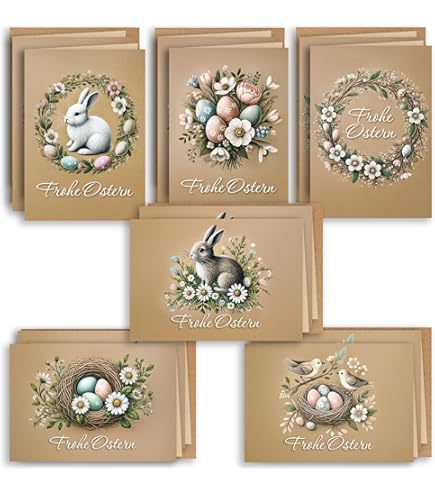 Cartes : ce lot se compose de 12 cartes pliantes + 12 enveloppes. L'intérieur est également imprimé avec un motif, mais il reste assez d'espace pour écrire vos propres mots., 12 enveloppes incluses Utilisation : cartes de Pâques, cartes de vœux, cadeau Japun - Lot de 50 cartes pliantes vierges comprenant des enveloppes Design : cartes de Pâques élégantes et élégantes, décorées de motifs printaniers. Lot De 25 Cartes Pliantes - Format A7 - 10,5 X 7,4 Cm - Avec Enveloppes Design : cartes de Pâques élégantes et élégantes. Cartes : ce lot se compose de 12 cartes pliantes + 12 enveloppes Les cartes sont très solides et stables, imprimées sur du papier de qualité supérieure, ce qui les rend très élégantes. Design : cartes de Pâques élégantes et élégantes, décorées de motifs printaniers. L'intérieur est également imprimé avec un motif, mais il reste assez d'espace pour écrire vos propres mots. 12 enveloppes incluses Ce magnifique lot de cartes de Pâques est parfait pour...