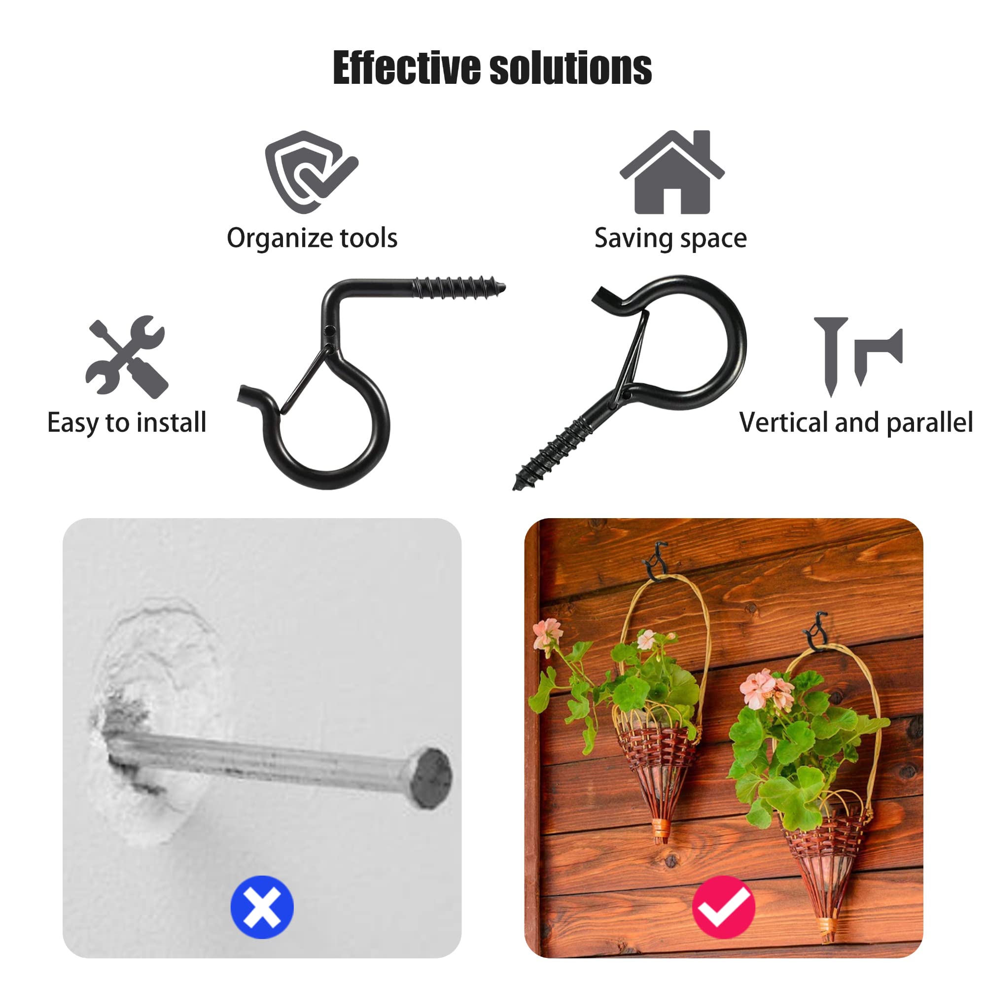 Améliorez votre maison et votre jardin avec nos 4 crochets à vis robustes, parfaits pour accrocher en toute sécurité des guirlandes lumineuses extérieures, des plantes, des décorations de Noël, et plus encore. La pointe de vis tranchante permet une installation rapide sans avoir besoin d'outils spéciaux. Applications polyvalentes : idéal pour accrocher des lumières de Noël, des guirlandes lumineuses extérieures, des plantes, des mangeoires à oiseaux, et plus encore, ces crochets robustes sont parfaits pour une utilisation en intérieur et en extérieur. Crochets à vis – 20 crochets muraux et de plafond pour suspension Parfait pour tous vos besoins de suspension. Crochet Pour Fixation Plafond Fizzix Lot De 70 Crochets à Vis, Crochets Blancs, Crochets De Plafond Vis à Crochet 8mm Chaque crochet est équipé d'une boucle de sécurité qui garantit que vos articles restent bien en place, ce qui les rend parfaits pour une utilisation en intérieur et en extérieur. Construction durable : ces crochets à vis sont fabriqués en acier durable avec un revêtement résistant à la rouille, assurant une utilisation à long terme à l'intérieur et à l'extérieur. Avec leur revêtement résistant à la rouille, ces crochets sont conçus pour durer, offrant résistance et sécurité même dans des conditions météorologiques difficiles. 4,52€. 83 vendus 5. Crochets de Plafond Carrés à Vis à Pression pour Plantes de Jardin, Accessoire avec Structure de Sécurité pour Suspendre des Guirlandes...