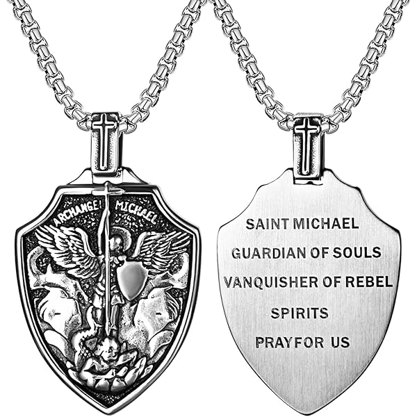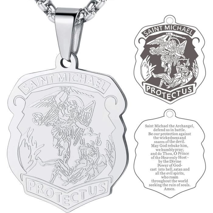 L’image du grand archange Saint Michel, symbolisant la victoire sur le mal, est minutieusement gravée pour offrir un sentiment de sécurité et de sérénité. Chaîne religieuse Collier Saint Catholique Médailles Hommes Femmes Le dos du pendentif arbore un texte de prière pour une protection supplémentaire. Pendentif Archange Saint Michel Pendentif Saint Michel Protecteur - Acier Inoxydable Doré Or Sainte Rita 【Cadeau Idéal pour les Hommes Croyants】 : Offrez ce collier Saint Michel à un homme lors d’un anniversaire, de la fête des pères ou toute autre occasion spéciale. Symbolisme Puissant et Spirituel] : Ce pendentif en acier inoxydable représente Saint Michel l'Archange, symbole de protection divine. · [Matériau Durable et... Un bijou significatif et pratique, qui allie spiritualité et style. Le pendentif Saint Michel Archange représente la force divine et la protection contre les mauvaises énergies. Il conserve son éclat et sa brillance au fil du temps, même avec un usage quotidien.