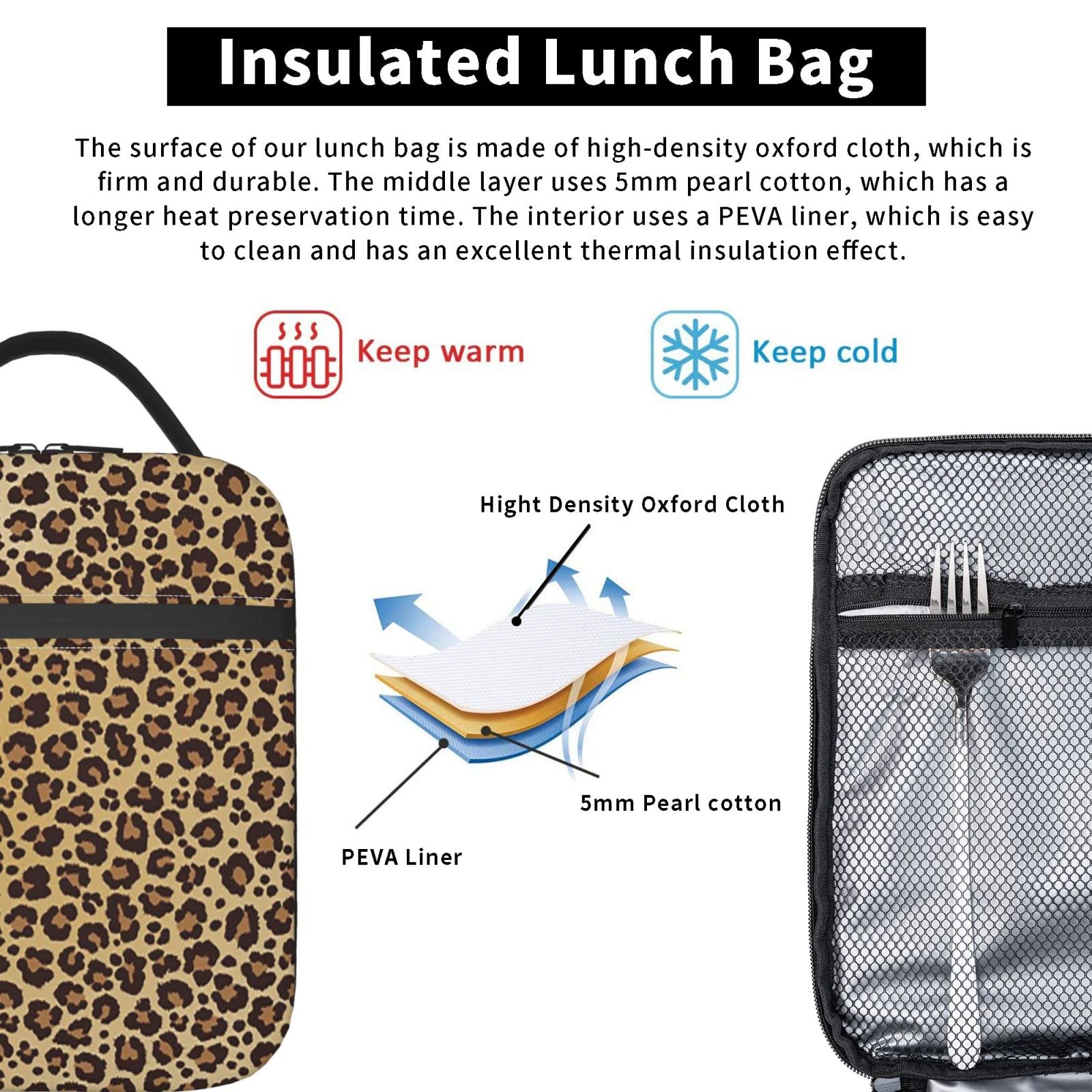Remarque : - Les mesures étant prises à la main, les tailles indiquées peuvent varier de 1 à 3 cm. Caractéristiques pratiques pour un usage quotidien : la couche intermédiaire est construite avec une isolation épaisse, assurant que vos aliments restent frais et à la bonne température. La bandoulière amovible permet de transporter à la fois la main et la bandoulière, offrant une polyvalence Doublure : feuille d'aluminium. Sac Isotherme Leopard Heopono – Sac à Bandoulière Isotherme à Imprimé Léopard Pour Homme Et Femme, Glacière Thermique Pour Repas, Pour Adultes Sac Isotherme Enfant Caractéristiques : Matière : polyester. Caractéristiques : - Ce sac à déjeuner isotherme léger, durable et compact, avec une belle forme et un design artistique, une façon tendance de transporter votre déjeuner quotidien, sandwich, salade, fruits, collations, boissons pour les voyages, pique-nique, travail, bureau et école. - C'est l'alternative parfaitement moderne et économique au sac en papier marron traditionnel ou panier de pique-nique. - Multifonctionnel, fermeture éclair lisse et ouverte, poignée à boucle amovible, facile à transporter. Ce sac est conçu avec un porte-bouteille latéral extensible et efficace, des poches intérieures en maille et une poche avant. Qualité supérieure : fabriqué à partir de polyester très durable, doublure en PEVA de qualité alimentaire et fermetures éclair robustes. Couleur : motifs personnalisés., Ouverture : fermeture éclair. Sac Isotherme Repas Personnalisé Atsem Léopard Fonction : boîte à déjeuner très fonctionnelle qui est équipée d'une poignée à boucle détachable qui sera toujours du plus bel effet attachée à votre sac à dos ou à côté d'une mallette. Tous les sacs sont fabriqués sans PVC, BPA, phtalates et plomb et ont subi des tests de qualité rigoureux. Sac à déjeuner isotherme pour homme et femme - Motif léopard et rose - Réutilisable - Avec ceinture d'épaule réglable - Sac isotherme portable pour bureau... - La couleur réelle peut varier légèrement de l'image en raison des effets d'éclairage et des paramètres de votre écran, merci de votre compréhension. Ce sac à déjeuner convient pour les femmes, les hommes, les filles, les garçons. Le sac à déjeuner isotherme est assez compact pour tenir dans un sac à dos, un sac de sport ou un sac de voyage pour suivre votre style de vie en déplacement. Pour toute question, n'hésitez pas à nous contacter.