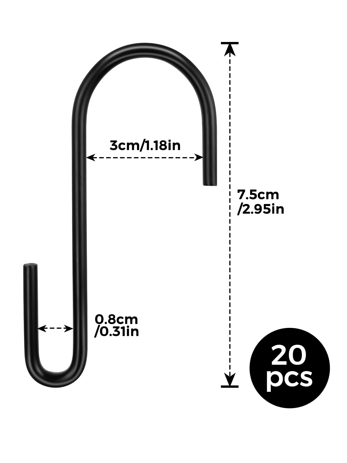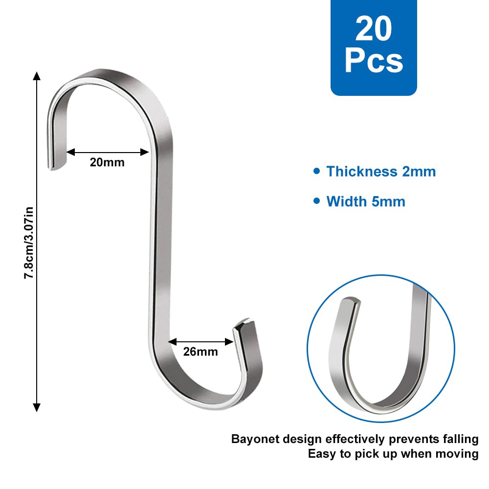🧢【Grandes Solutions de Rangement pour Toutes Les Occasions】 Ces crochets s sont de grandes solutions de stockage, Les Crochets en Forme de S Suspension peuvent être utilisés dans la cuisine pour stocker diverses casseroles et poêles, dans le salon pour accrocher des vêtements et des jeans, dans la salle de bain pour accrocher des serviettes et des gants, la décoration de votre salle de repos à l'extérieur pour accrocher un panier et des lumières, etc. 20 Pièces Crochet S avec un Poids Maximum de 7 kg] Vous recevrez 20 Pièces Crochet S noir pour la suspension. La longueur du Crochet en S Inox est de 7.5cm/2.95inch. Le crochet S a un poids maximal de 7 kg, ce qui vous permet de suspendre facilement des objets de petite et moyenne taille à différentes occasions. 👗[Des Astuces Pratiques pour gagner de La Place]Les crochet... Les crochets en S noirs Heavy Duty sont fabriqués en acier inoxydable de qualité supérieure, peuvent accrocher des objets petits et moyens avec un certain poids. Description du produit Ces petits crochets sont très pratiques à hacher, ce qui est une solution créative d'économie d'espace et de rangement. Crochet En S DONQL 30 Pièces Crochet S, Metal, Crochets Et Patères Crochet Tringle Crochet en S, acier inoxydable, 80 x 3 mm | Ranger & conserver chez Dille & Kamille 👗【Des Astuces Pratiques pour gagner de La Place】Les crochet cuisine en forme de S sont adaptés pour accrocher des objets facilement sans clous, vis ou adhésifs, vous pouvez accrocher les crochets au poteau fermement en quelques secondes. DONQL 20 Pièces Crochet S,Crochet en S Inox,Crochet en S Metal Multifonctions,Crochets en Forme de S Suspension Tasses Casseroles Vêtements 👜【20 Pièces Crochet S avec un Poids Maximum de 7 kg】 Vous recevrez 20 Pièces Crochet S noir pour la suspension. Ce crochet noir est solide et robuste, durable et durable. Crochets et patères Les crochets en S peuvent être utilisés dans des environnements qui ont des épisodes d'humidité élevée. Le crochet S a un poids maximal de 7 kg, ce qui vous permet de suspendre facilement des objets de petite et moyenne taille à différentes occasions. La longueur du Crochet en S Inox est de 7., 5cm/2., 95inch. Les crochets en s peuvent accrocher les articles en toute sécurité et ne glissent pas facilement. Leur conception unique permet de suspendre des objets sans utiliser de bâtons ou de vis.